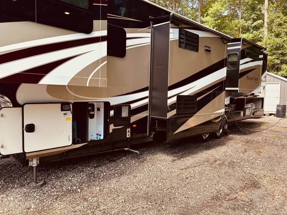Design Solitude ST380FL Fifth Wheel, equipped with the Weather-Tek package and