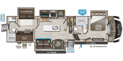 This Grand Design has a overall length of 40.33 ft and Comes equipped