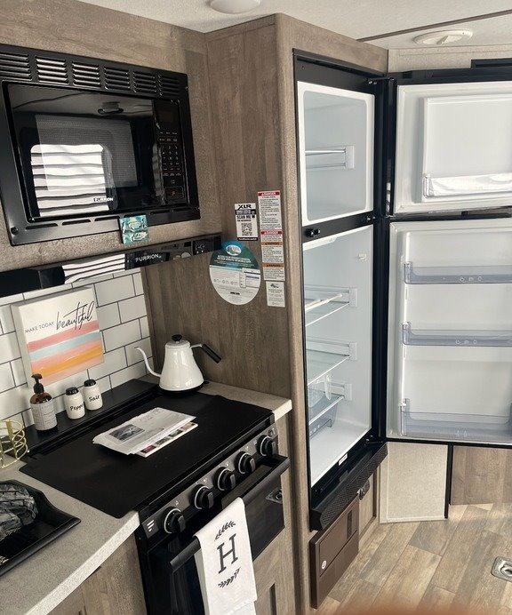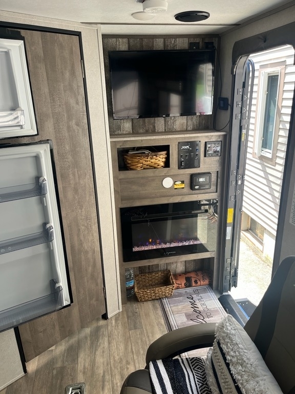 “NEW: GENERATOR AND TOW HITCH! New Cushions Available! 2022 Forest River XLR Micro Boost 25LRLE Travel Trailer Toy Hauler in excellent condition. This well-equipped unit features a tankless water heater, solar panel, two Smart TVs, and outside surround sound for entertainment inside and out. The interior includes two comfortable captain’s chairs and a cozy fireplace, creating a welcoming space to relax after a day of adventure. The stove and oven have never been used, and everything is clean and well-maintained. Comes complete with hitch—ready to hit the road and haul your toys in style.”