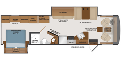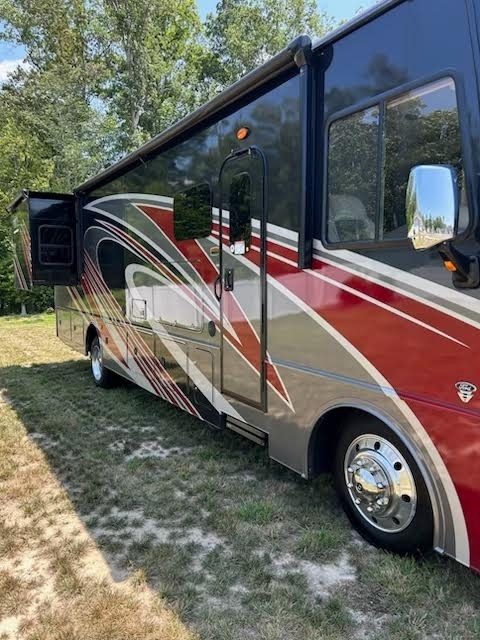 It rides on the Ford F53 chassis with the powerful 7.3L V8 “Godzilla” engine paired with a 6-speed TorqShift automatic transmission. Tons of storage, both inside and out, and sleeping for up to 8 people makes this the perfect setup for families, guests, or long road adventures.