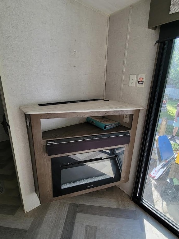 This Forest River has an overall length of 38.75 feet and comes equipped with 2 power retractable slide-outs, 1 power retractable awning with built-in LED light strip, 1 A/C unit, a bunkhouse, a fireplace, and room to sleep up to 10. This unit has been well-maintained.