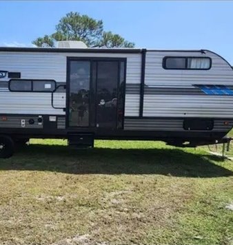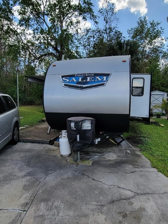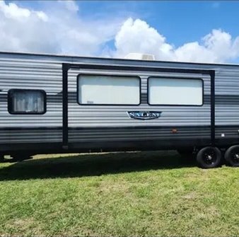 “This 2020 Forest River Salem 36VBDS Travel Trailer was built with several custom upgrades that became standard in the 2022 model, making it a well-equipped and comfortable home on wheels. Key features include a sliding glass patio door, 50-amp electric service, a spacious queen bed, and a porcelain toilet with bidet. Additional upgrades include an electric switch for the water heater, chrome bathroom shower drain, exterior shower/hose connection, and an automatic switching propane regulator. It comes set up for King Satellite Wi-Fi Internet service but does not have the devices. All the window coverings are original, including blackout shades, aluminum blind in kitchen, and curtains in bunkhouse. This trailer offers the perfect combination of comfort, convenience, and style—ready for the next adventure.”