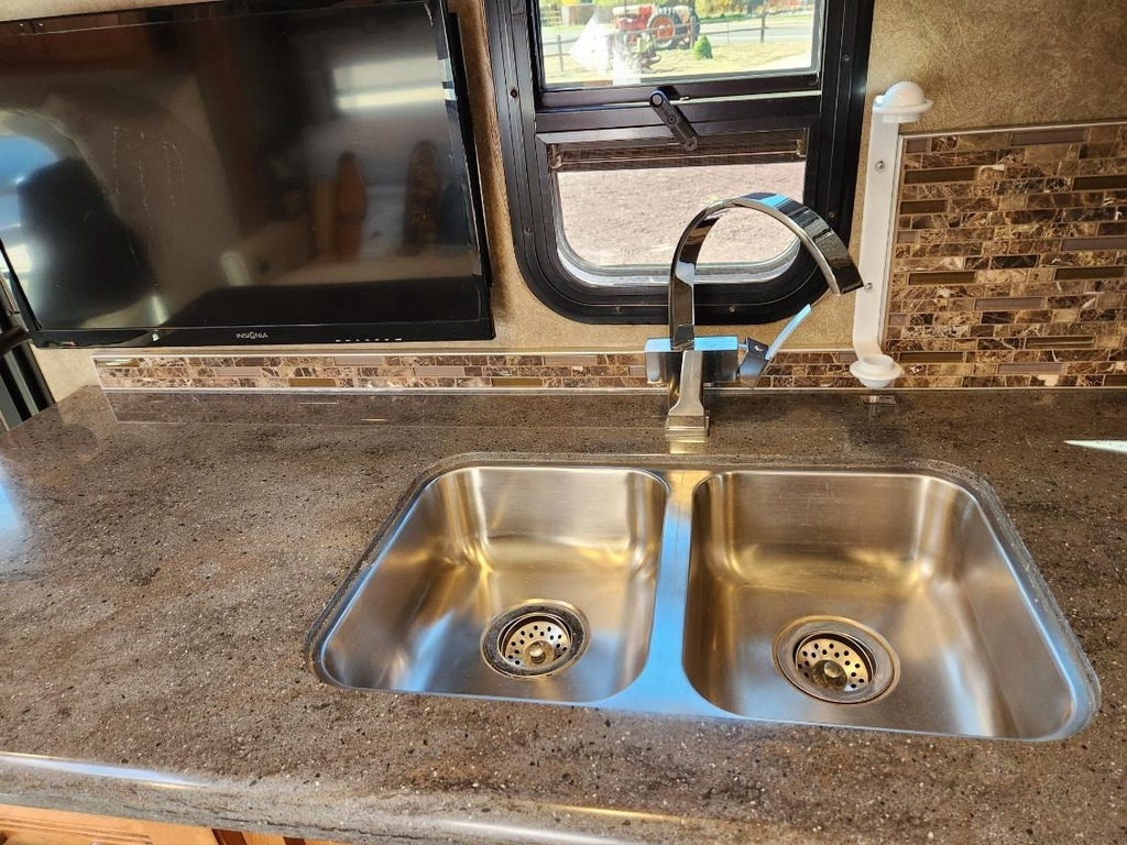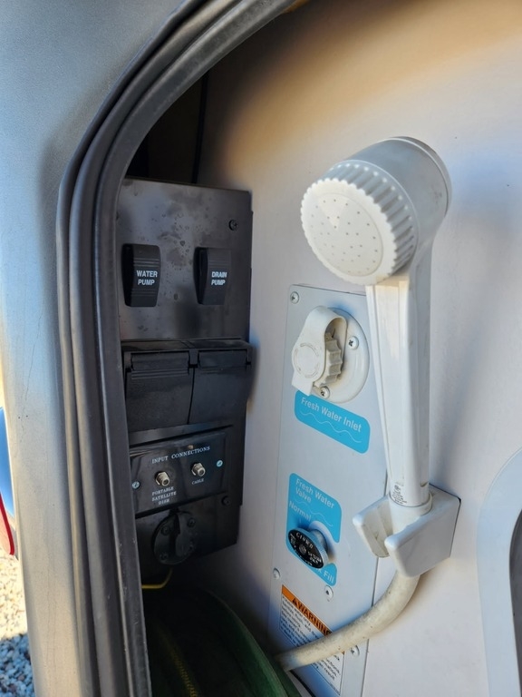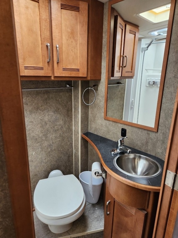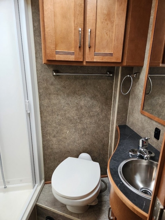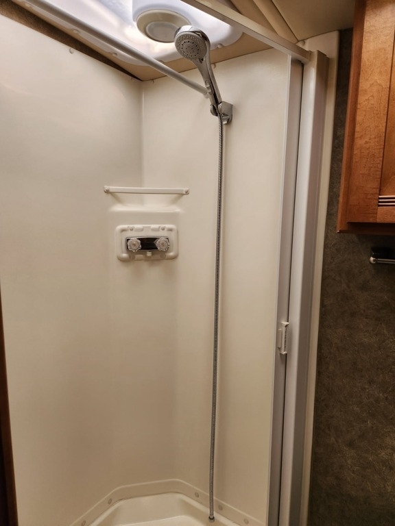 RV features LED lighting throughout, a self-squeegeeing shower door, and