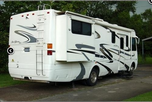 INTERIOR FEATURES: Vinyl Floors, Carpet, (Includes Additional Floor Cover To Go Over Stairs Inside For Additional Room Inside), Oak Cabinets, Corian Counter Tops, Full Kitchen, Top/Bottom Fridge, Conv. Microwave, Stove Top, Split Bath, Full size Shower w/ Glass Door & Seat, Skylight, TV, CD/Cassette, Sound System, Cobra CB Radio, Monitor Panel, Day/Night Shades, Fantastic Fan, Sleeps 6: Queen Island Bed, Sofa Sleeper, Dinette Sleeper, Leather Captain’s Chairs, Leather Swivel Chair, Passenger Chair Reclines, Windshield screen that goes across entire windshield, you can see out but no one can see in. The screen door has Plexiglas covering it, so it can be used in all types of weather keeping in the heat and a/c.