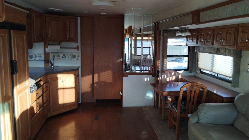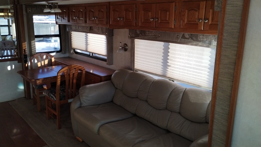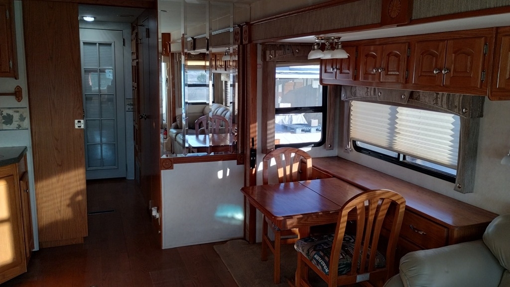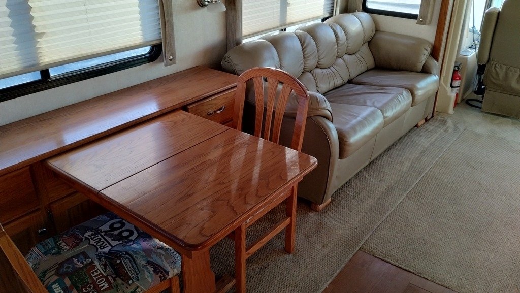 Passenger seat is a recliner. Extra chairs for dining area included. Auto leveling