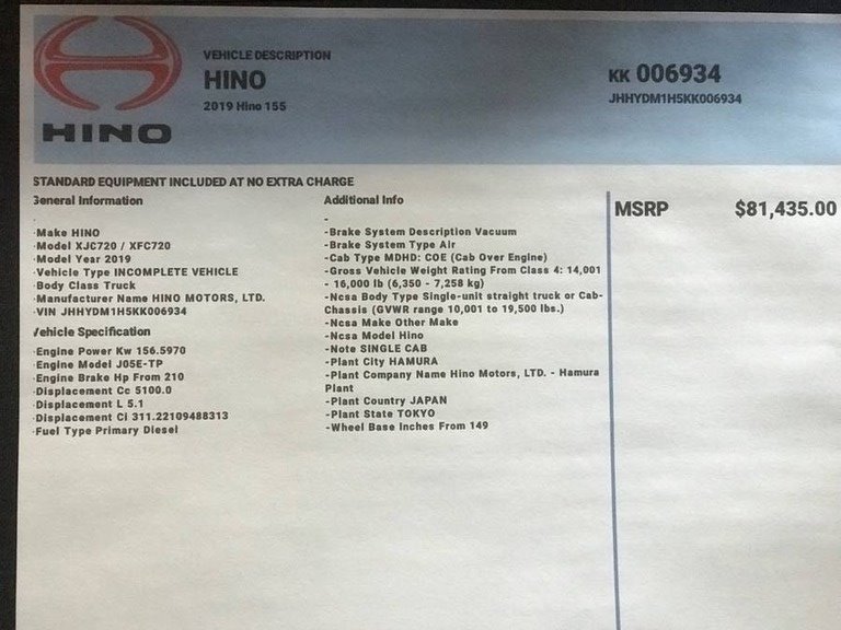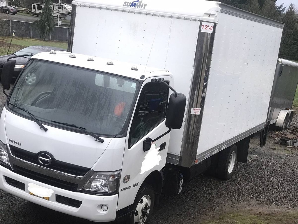 “Hino 155 box truck with a 12' high and 16' long box truck bed. It's a clean title with only 111k miles and it runs and drives perfectly. It's very clean and in perfect mechanical condition, it even has a hydraulic lift with 1500 lb. capacity. It's a great work truck and runs perfectly. It’s a diesel and has nice hardwood flooring.”