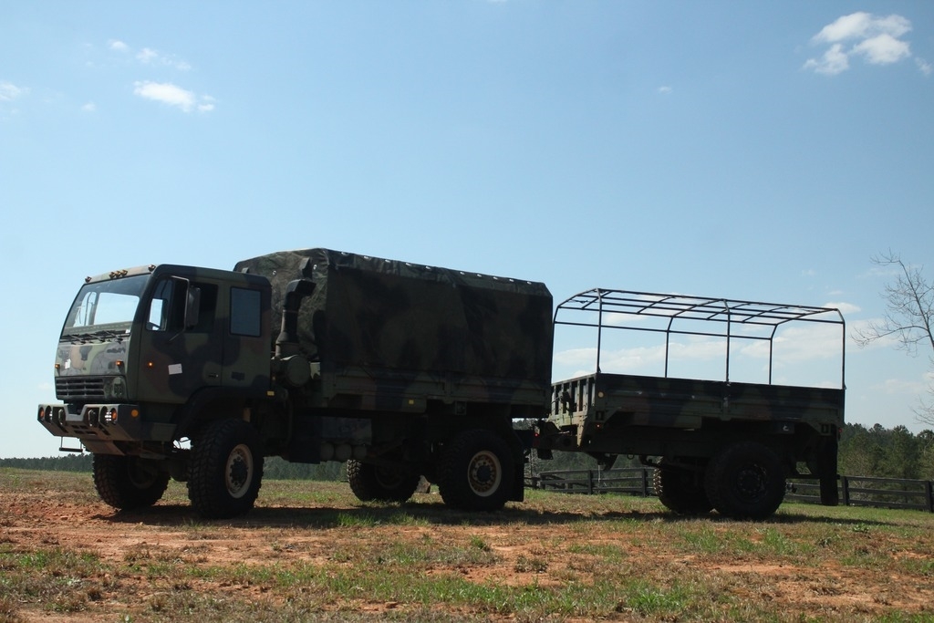 This 1996 M1078 LMTV is powered by a CAT 3116 Turboed and Intercooled Fully Mechanical Diesel Engine, paired with an Allison 8-Speed Push Button Automatic Transmission. This LMTV only has 7,122 Original Miles and is shown with a Woodland Camo exterior and a Green/Grey interior. This LMTV comes with an M1082 2 1/2 Ton LMTV/FMTV Single Axle Drop Side Trailer.