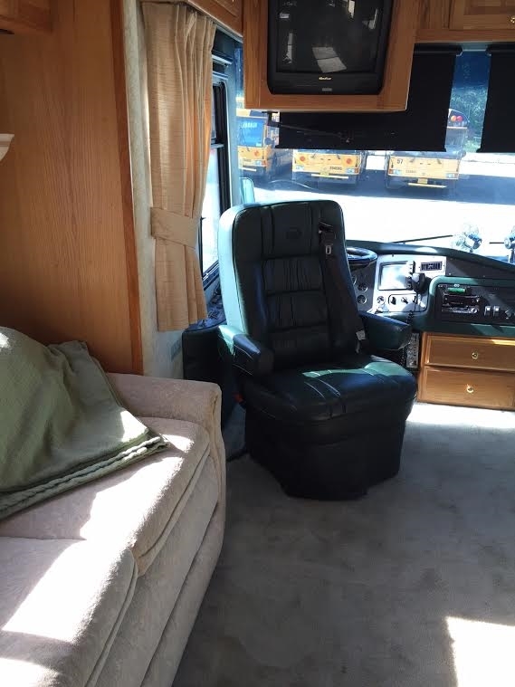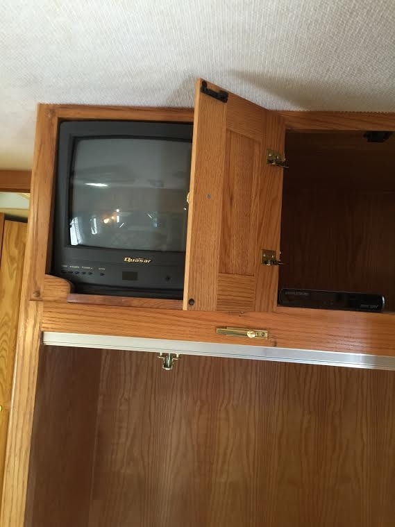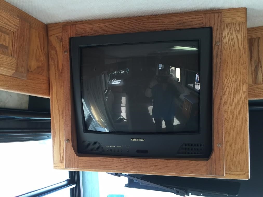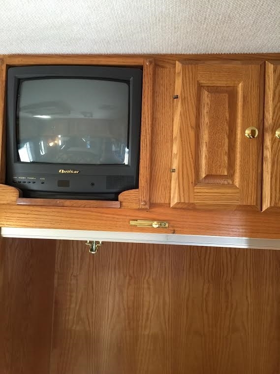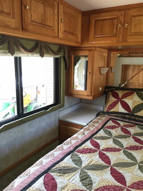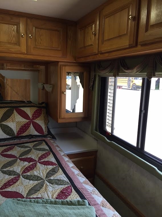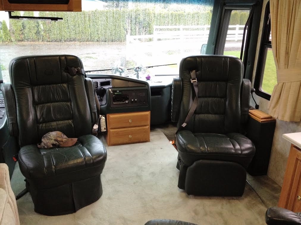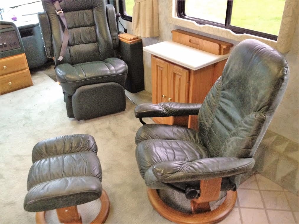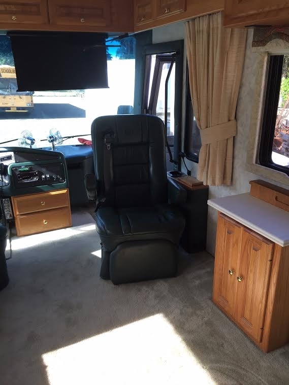 INTERIOR: White Corian Counter Tops, 3-Burner Stove, Convection Oven, Fridge/Freezer, Ice Maker, Table/ 2 Chairs, Original 20in TV, Surround Sound, D/Stereo, CB Radio, Cable Ready, Sofa/Chair Sleeper, Shower, Washer and Dryer, Queen Size Bed, Original 13in TV in bedroom, 2 Bedroom Closets, Storage Dresser, Free Standing leather/woodbase stool and recliner, etc