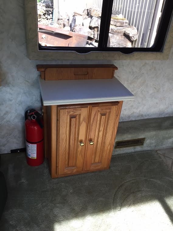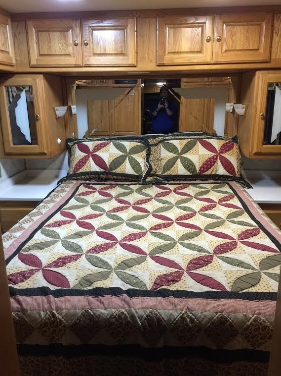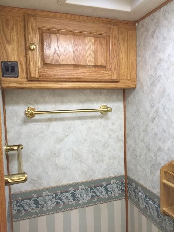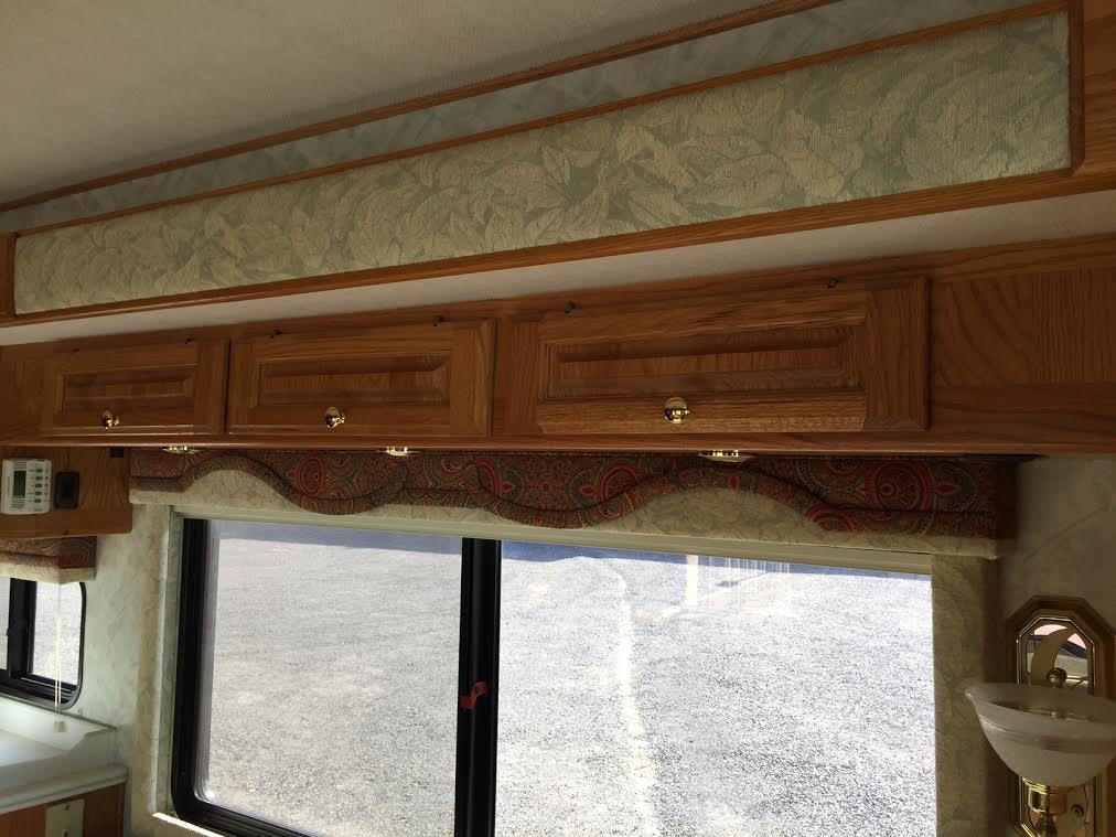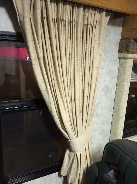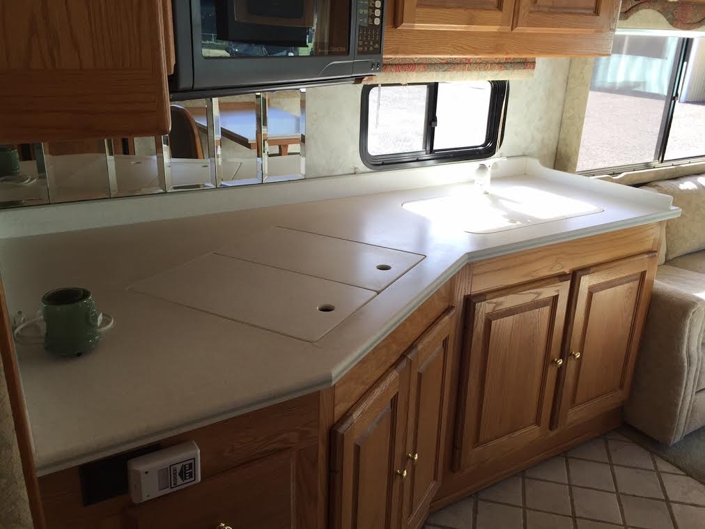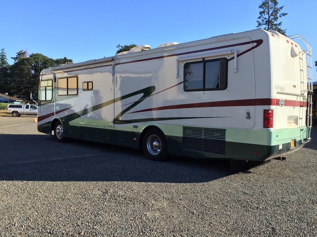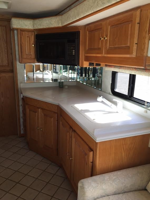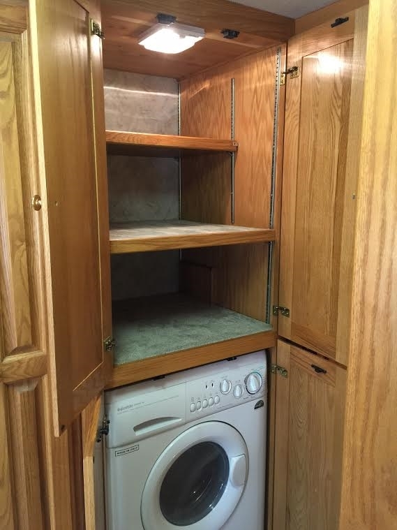 INTERIOR: White Corian Counter Tops, 3-Burner Stove, Convection Oven, Fridge/Freezer, Ice Maker, Table/ 2 Chairs, Original 20in TV, Surround Sound, D/Stereo, CB Radio, Cable Ready, Sofa/Chair Sleeper, Shower, Washer and Dryer, Queen Size Bed, Original 13in TV in bedroom, 2 Bedroom Closets, Storage Dresser, Free Standing leather/woodbase stool and recliner, etc