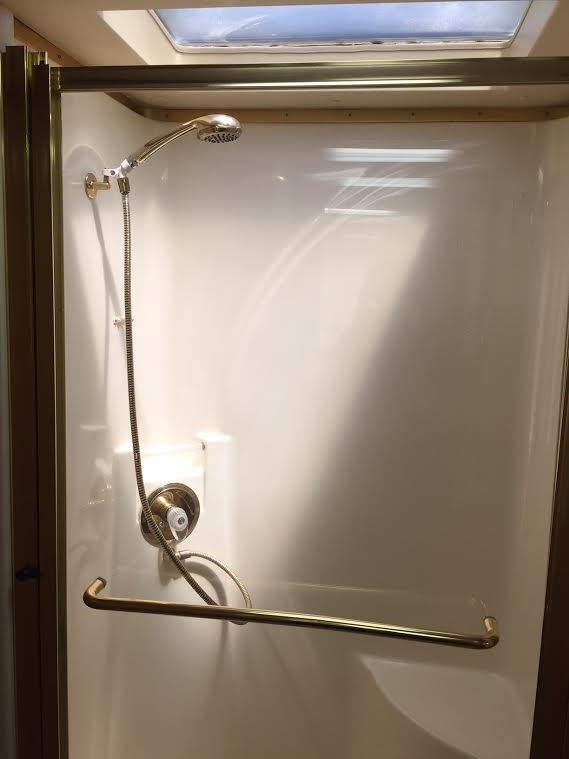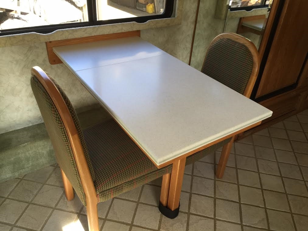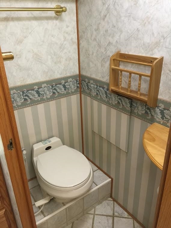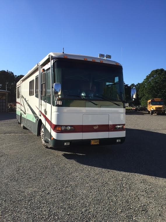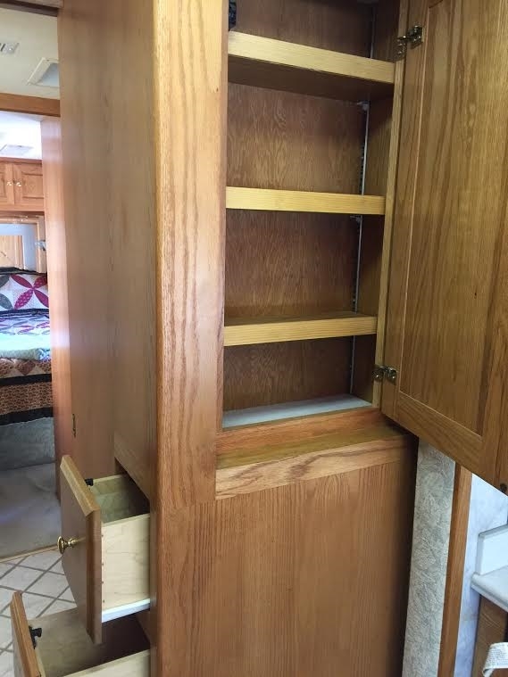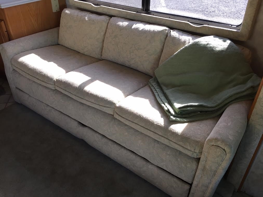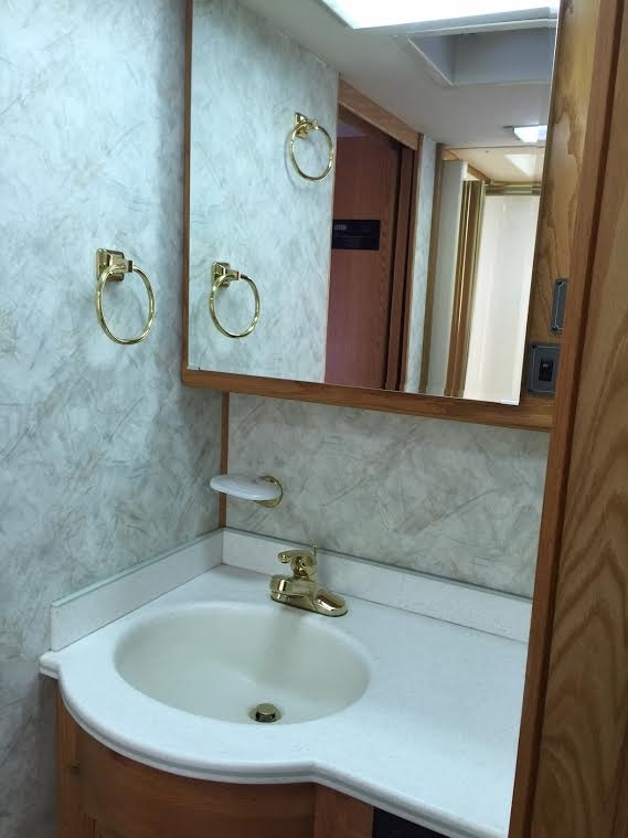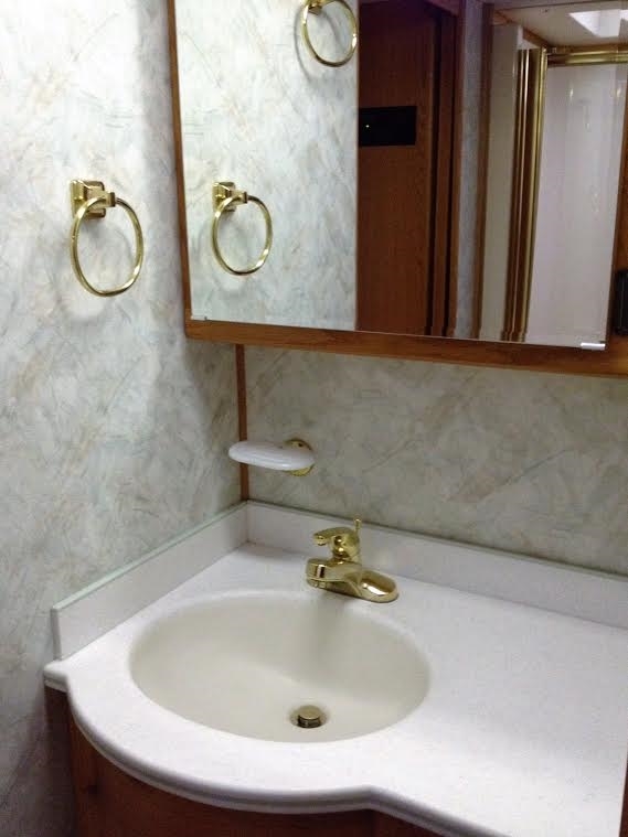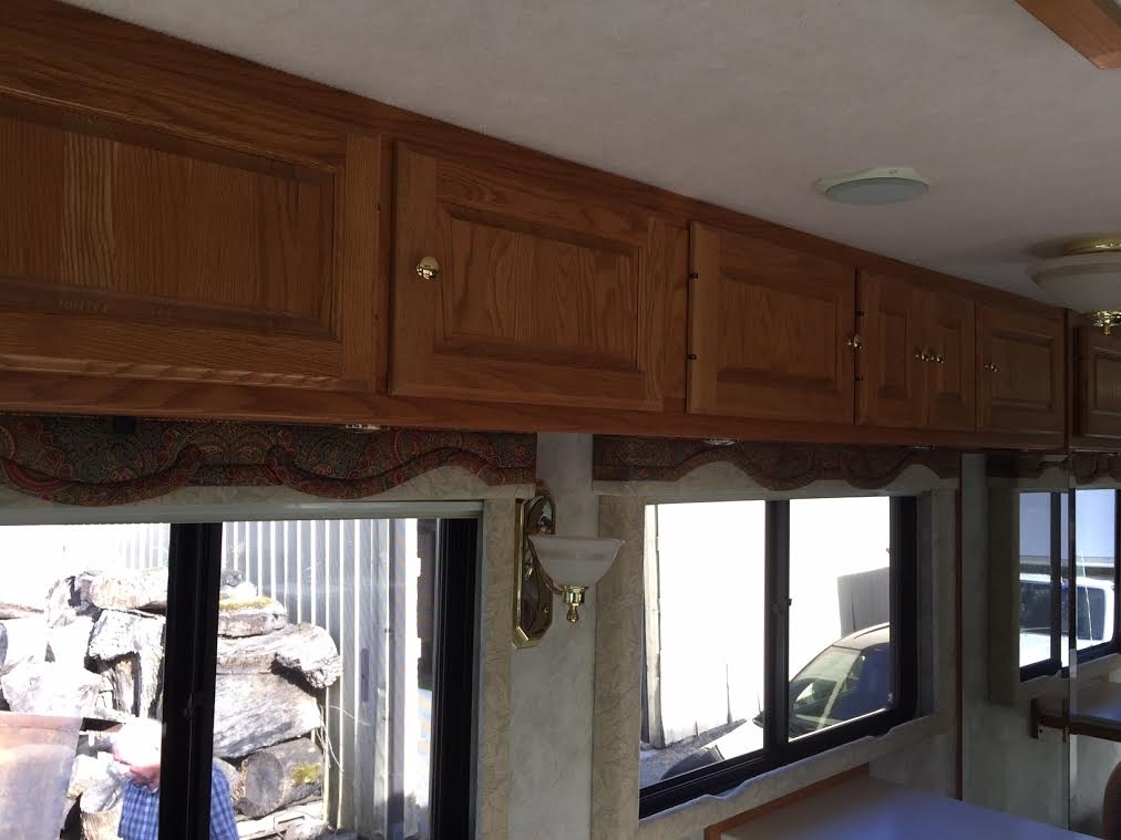 INTERIOR: White Corian Counter Tops, 3-Burner Stove, Convection Oven, Fridge/Freezer, Ice Maker, Table/ 2 Chairs, Original 20in TV, Surround Sound, D/Stereo, CB Radio, Cable Ready, Sofa/Chair Sleeper, Shower, Washer and Dryer, Queen Size Bed, Original 13in TV in bedroom, 2 Bedroom Closets, Storage Dresser, Free Standing leather/woodbase stool and recliner, etc