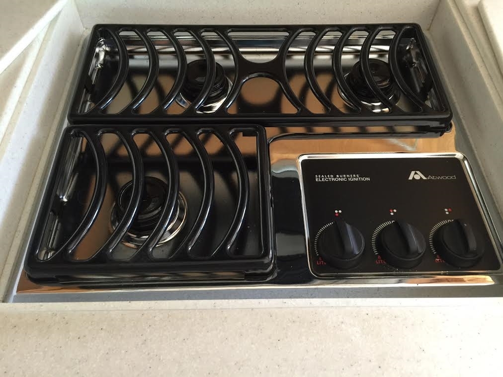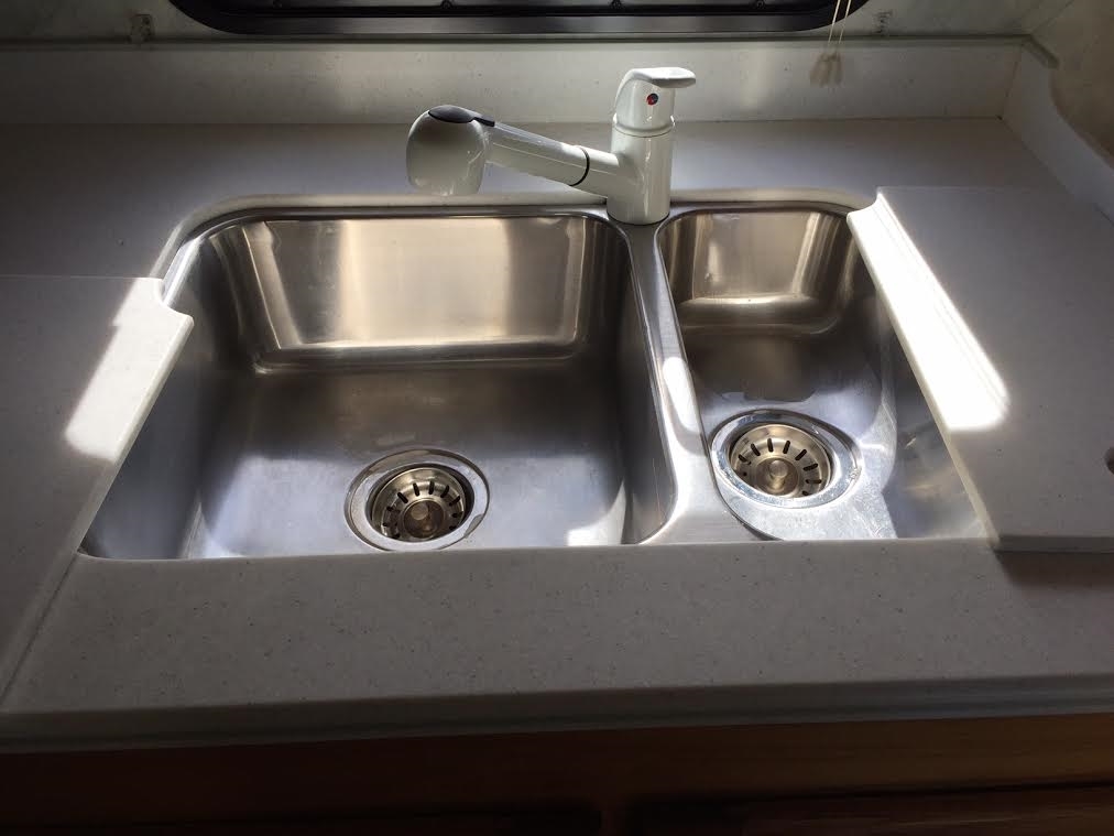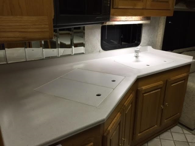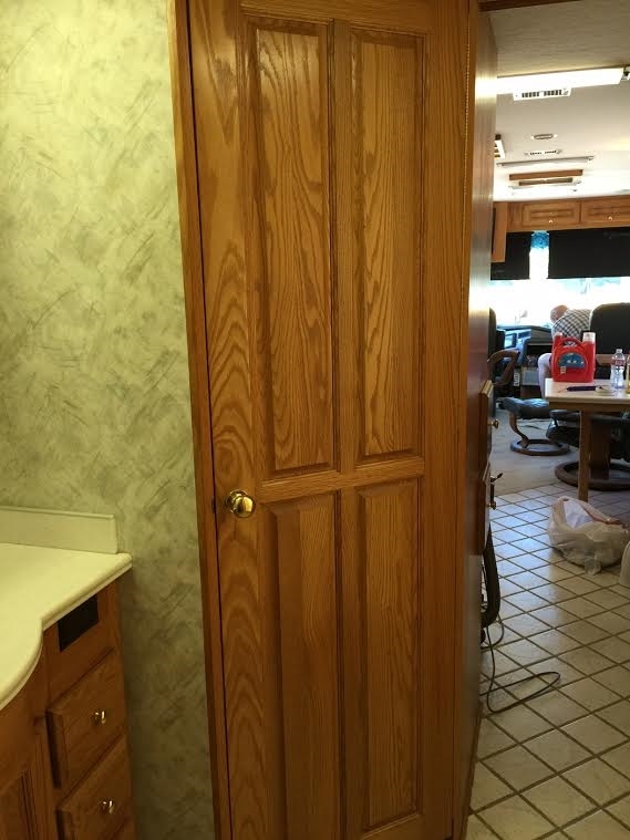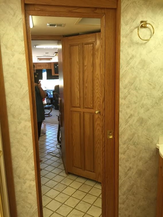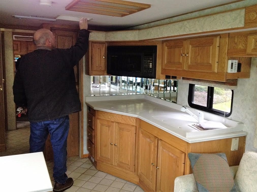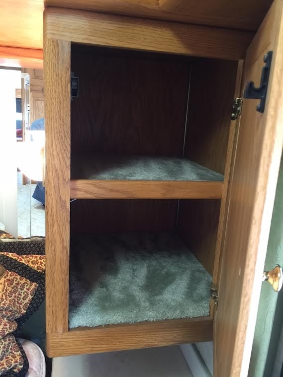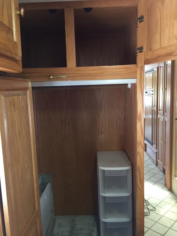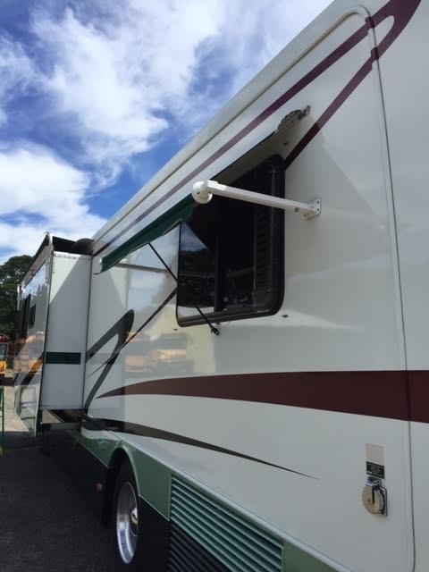 INTERIOR: White Corian Counter Tops, 3-Burner Stove, Convection Oven, Fridge/Freezer, Ice Maker, Table/ 2 Chairs, Original 20in TV, Surround Sound, D/Stereo, CB Radio, Cable Ready, Sofa/Chair Sleeper, Shower, Washer and Dryer, Queen Size Bed, Original 13in TV in bedroom, 2 Bedroom Closets, Storage Dresser, Free Standing leather/woodbase stool and recliner, etc