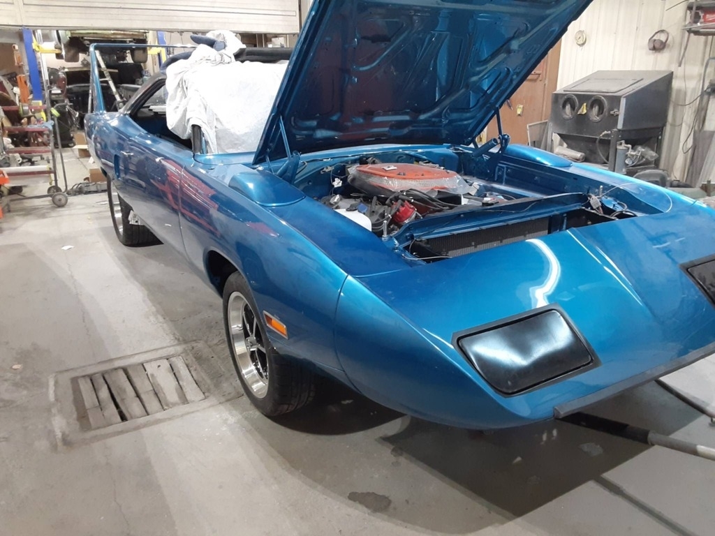 “This Superbird was restored with no shortcuts taken — a complete 13-month rotisserie build, professionally completed from bare metal up. The car was stripped via full media dip, ensuring every inch of the body was properly prepped before paint and reassembly. There is a small cosmetic crack in the paint on the nose, but it does not affect structure, performance, or the overall show-quality finish.