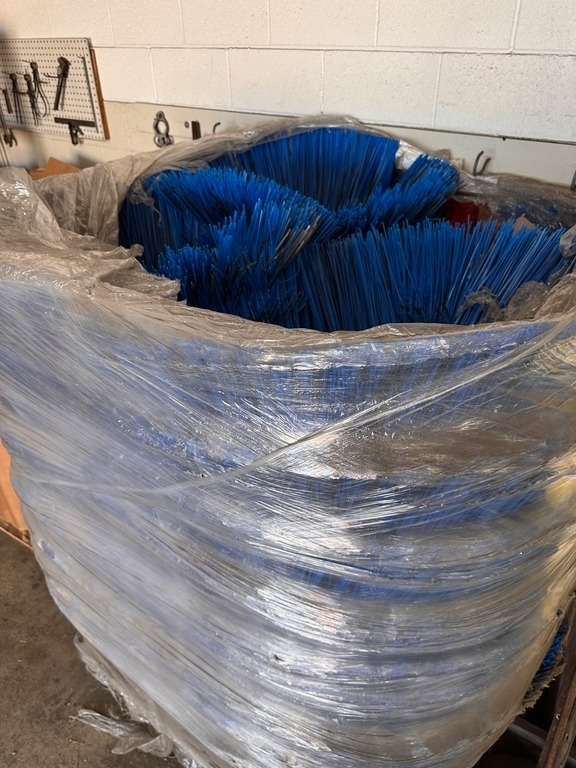 is a pallet of spare brooms and parts, giving you everything you need to keep