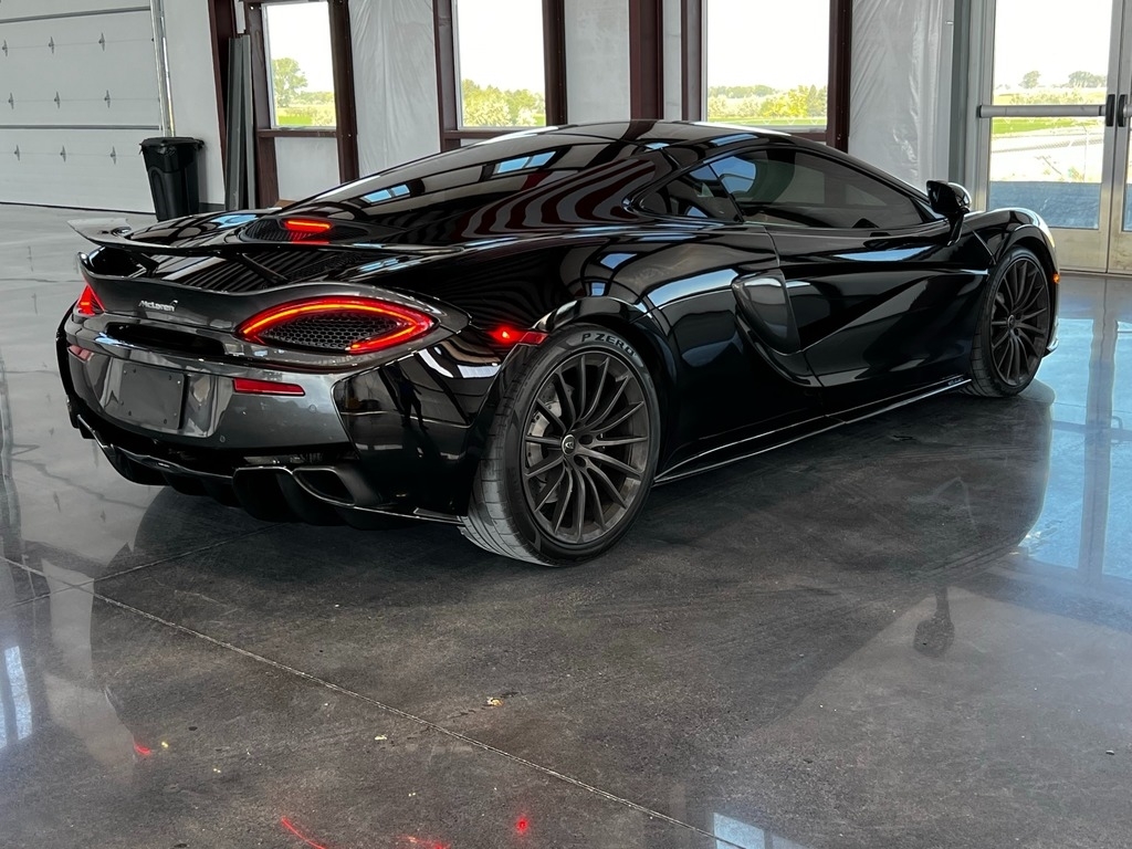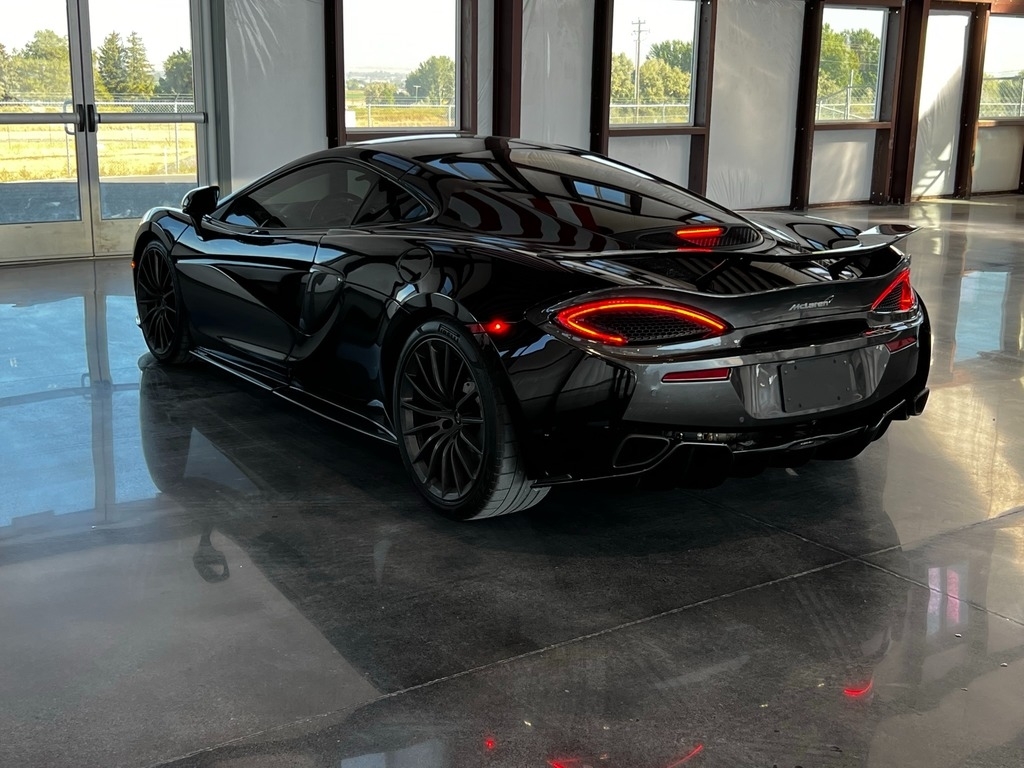 This 2017 McLaren 570GT Coupe is powered by a twin-turbocharged 3.8L V8 gasoline engine paired with a 7-speed automatic transmission. This McLaren 570GT is shown with an Onyx Black exterior and a Carbon Black interior. Engine is unmodded. I'm the third owner of the car, I bought it late summer of last year out of California. Always garage kept. I had the rear wing installed, 19'' wheels, new rubber.