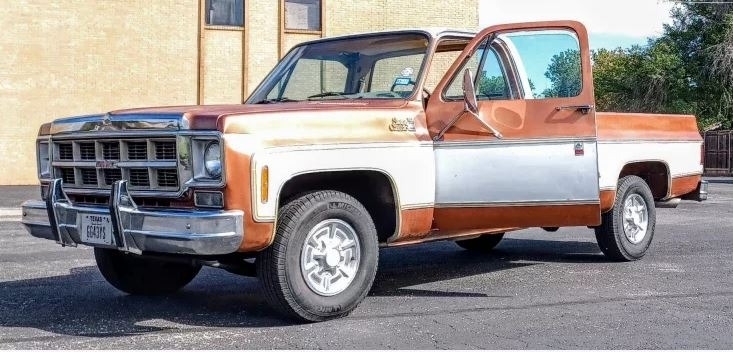 1977 GMC Sierra Classic Pickup is powered by a 454 ci V8 gasoline engine paired