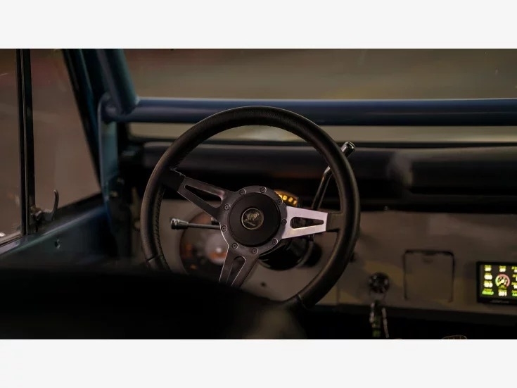 We did a complete body of frame restoration. It is an uncut bronco, which means the fenders have not been cut. It does not have heater or A/C. That being the case the car is still a clean title.