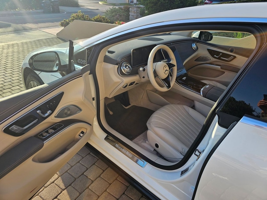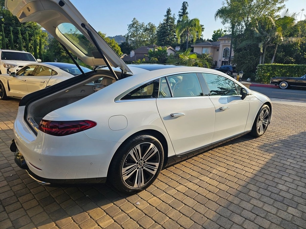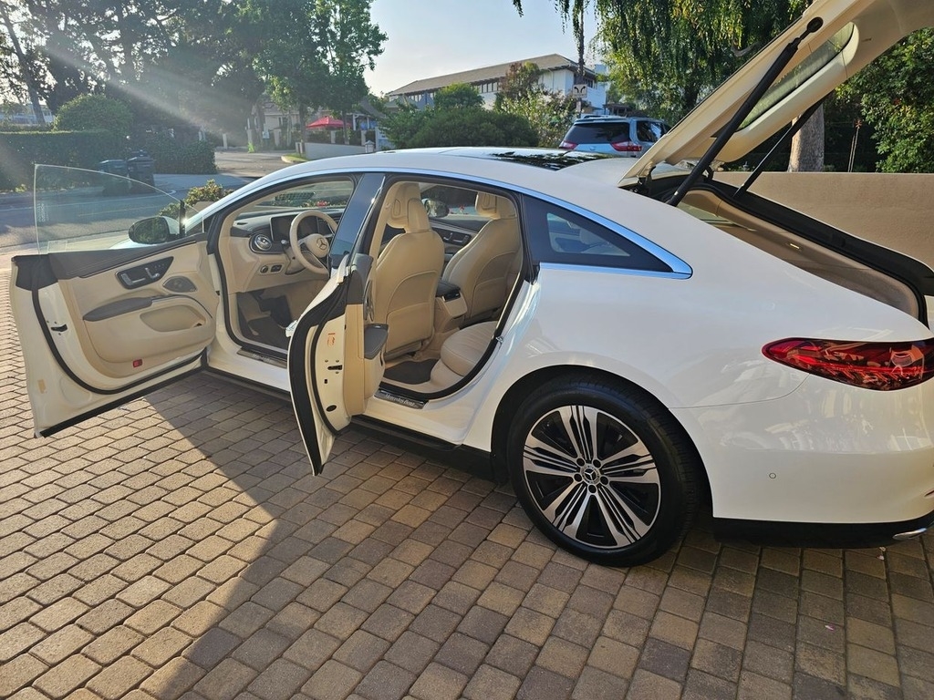 This 2022 Mercedes is powered by a 329 hp electric engine and a single-speed fixed-gear automatic transmission with 22,480 original miles. Proudly shown with white exterior paint with a beige interior.