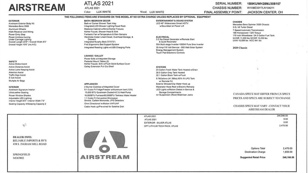This 2021 Airstream Atlas Murphy Suite Class B Motorhome is 24.75