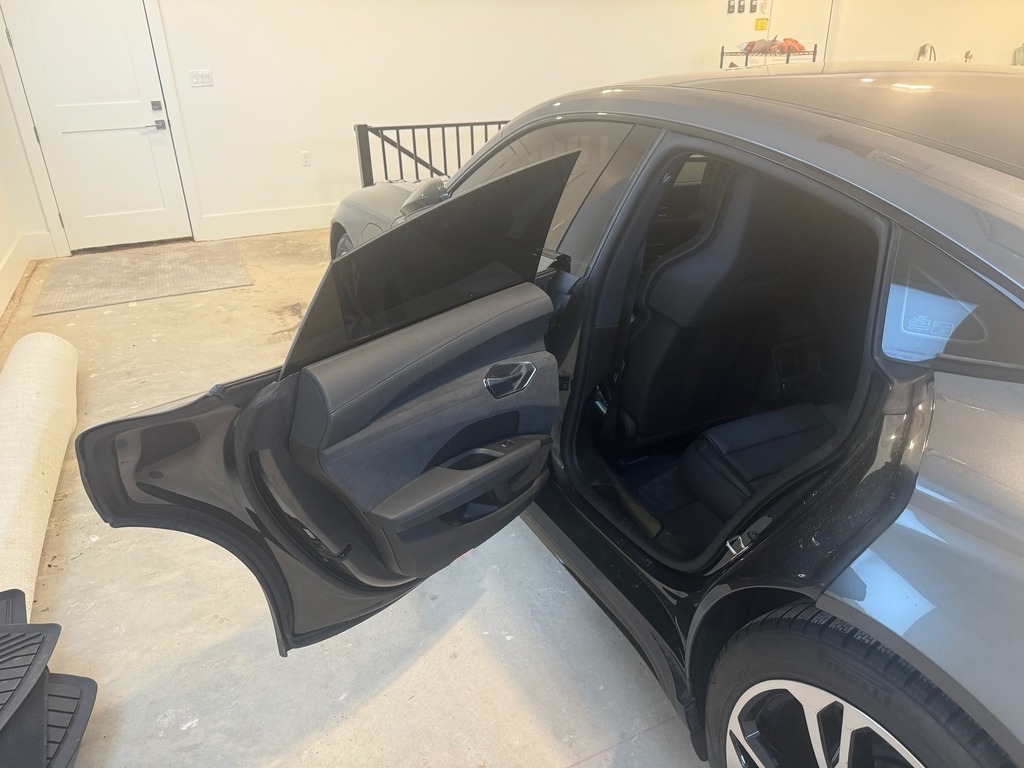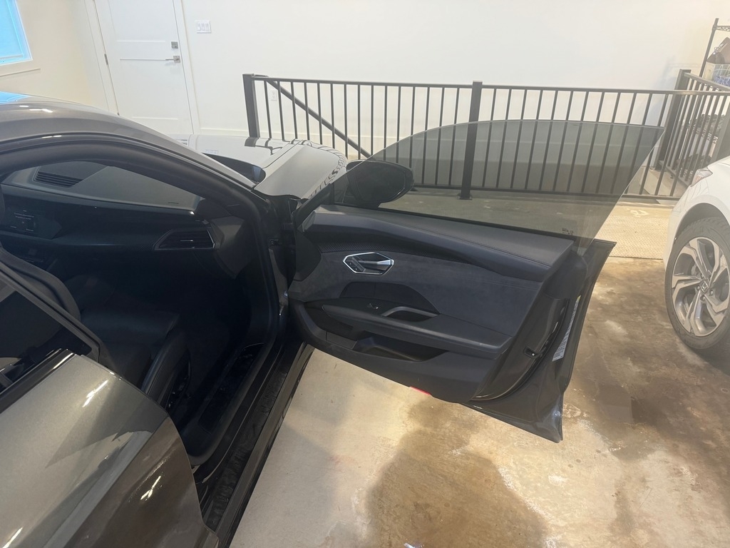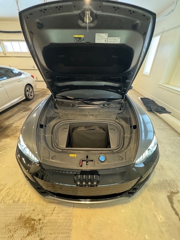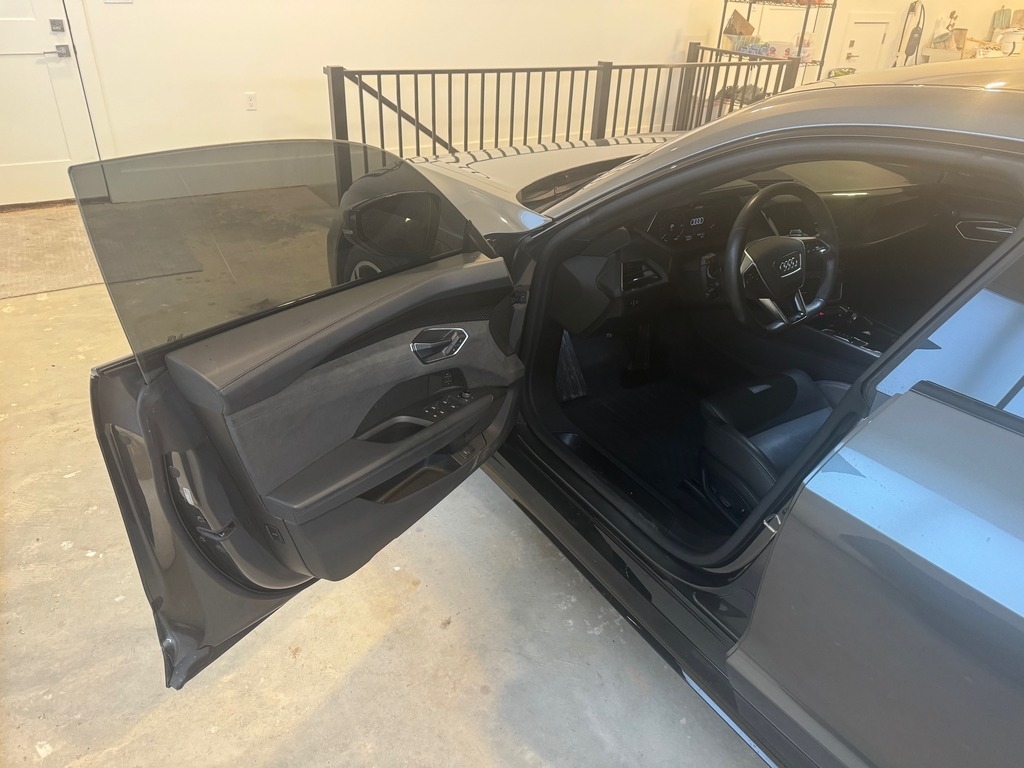 This Audi is powered by a 469HP electric motor paired with a 2-speed automatic transmission. It has 12,800 miles and is shown with a dark gray exterior and a black leatherette interior. This vehicle has been non-smoking, garage-kept, and well-maintained.
