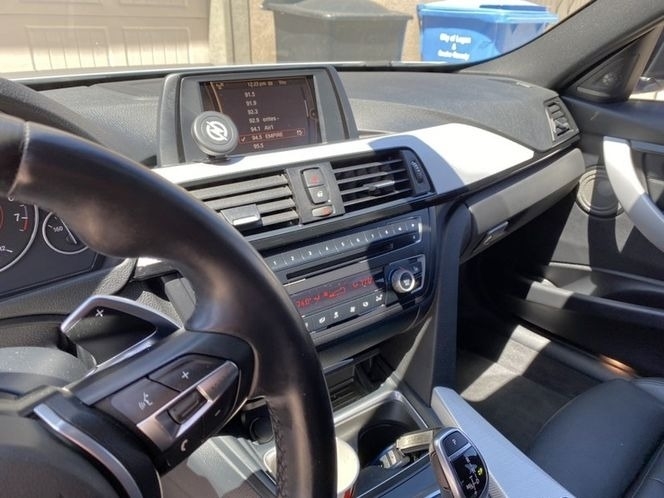 This ’14 BMW 335i is powered by a 3L I6, Gas Engine with 55,560 miles on it, paired with a 8-Speed Automatic Transmission. This beauty is shown in Metallic Silver with a Black Leather Interior and has been garage kept and non-smoking.