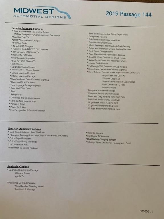 This 2020 Midwest Automotive Designs Passage is powered by a Mercedes-Benz Diesel Engine, Paired with an Automatic Transmission, and Driven on a Mercedes-Benz Sprinter Chassis with ONLY 2,300 Original Miles!! The Overall Length is 19 Feet and the Unit Comes Equipped with 1 Power Awning with LED Lights, 1 A/C Unit, and Plenty of Room to Sleep 2. This is a Non-Pet/Non-Smoking Motorhome and there have Not Been any Accidents or Water Damage. Extended Warranty Totally Transferable! 84 Months/50,000 Miles, Tire and Wheel Coverage 5 Years! ($10,000 Value)