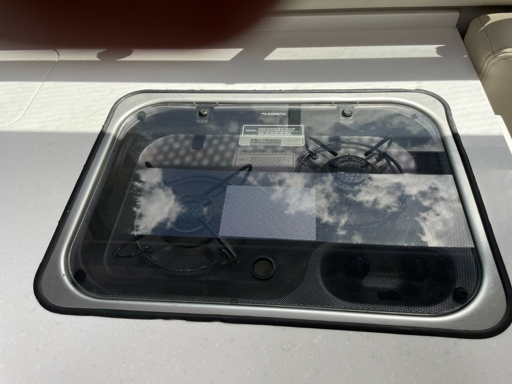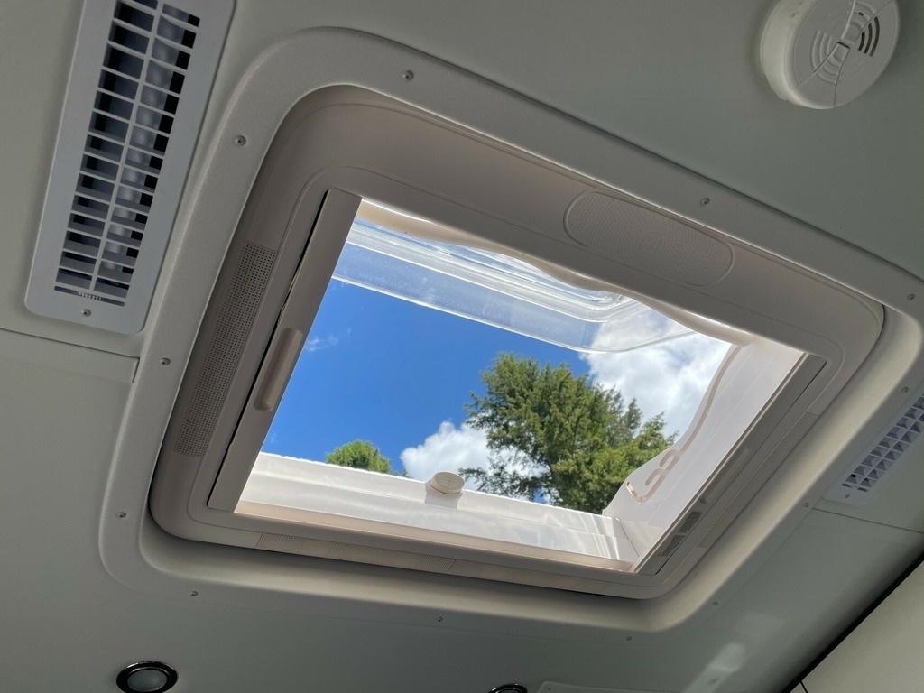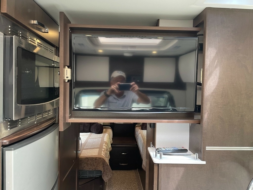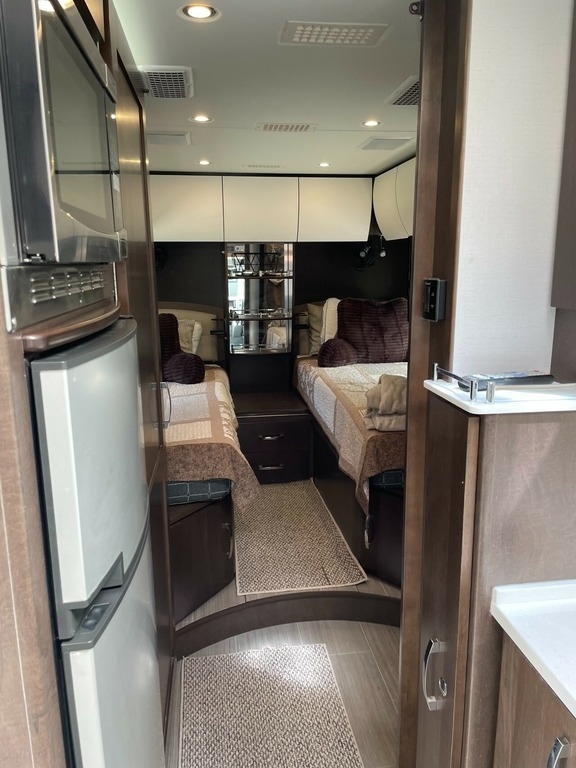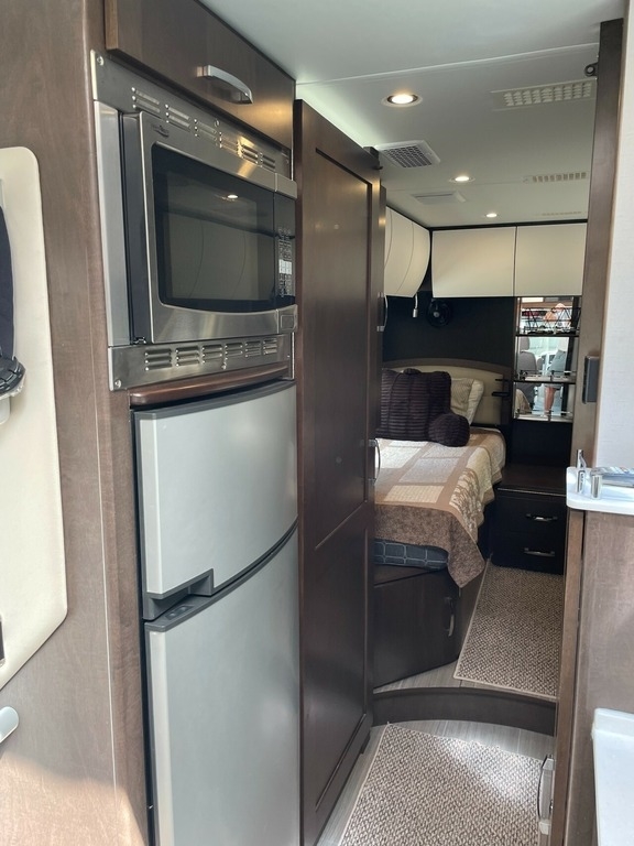 refrigerator, convection microwave oven, solar panel, inverter, and whole coach