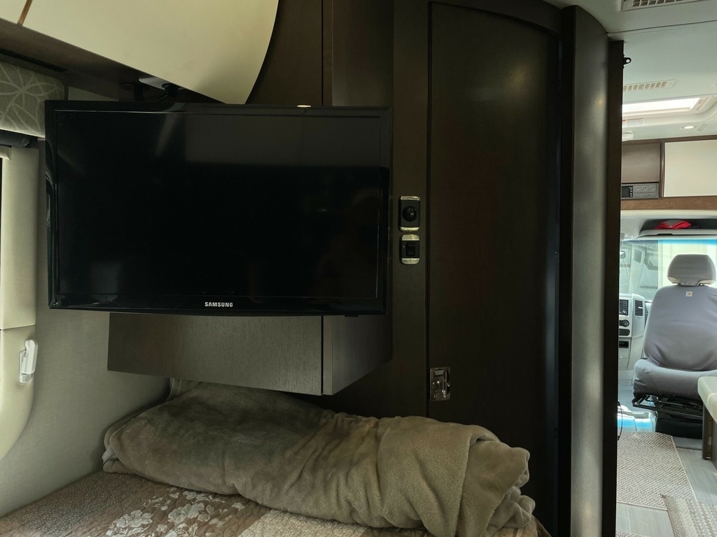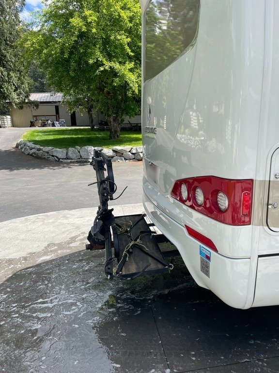 entertainment system. Two TVs and a custom three-place e-bike/storage rack. All