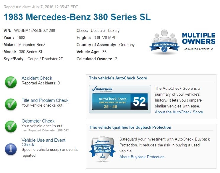 buying that sporty 1983 Mercedes Benz 380SL convertible when times were