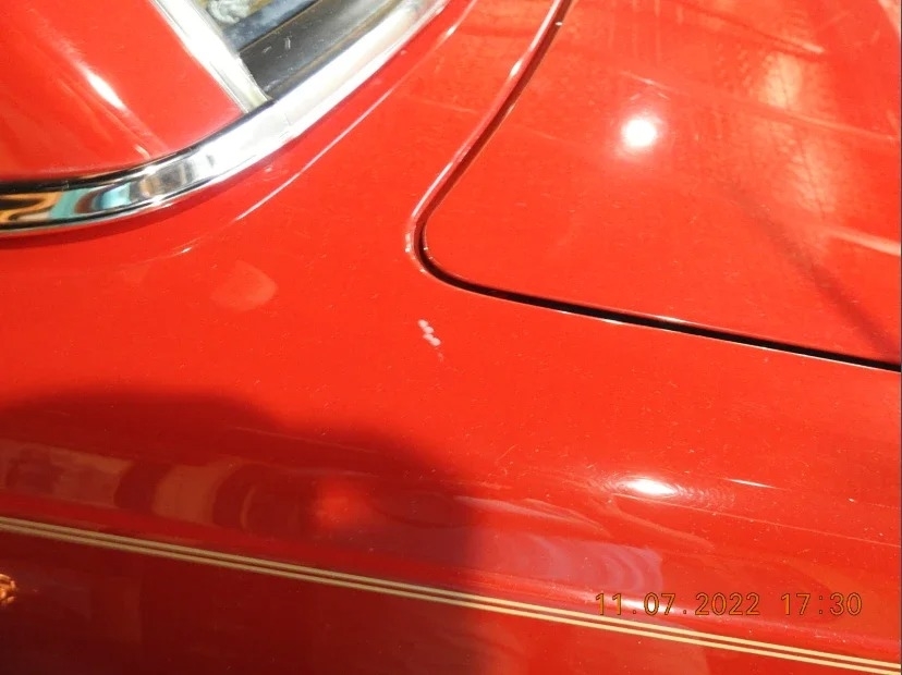 transmission with 33,393 original miles. Shown with red exterior paint and a tan