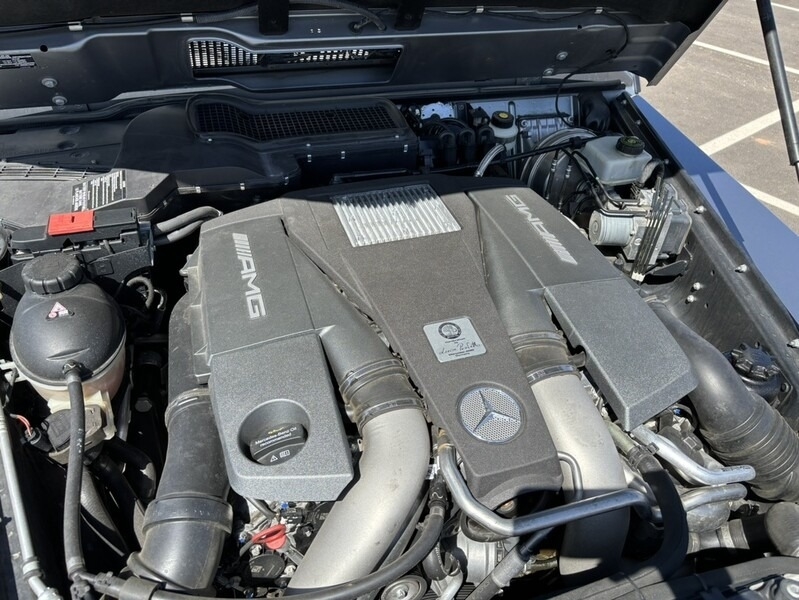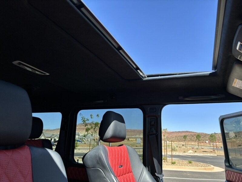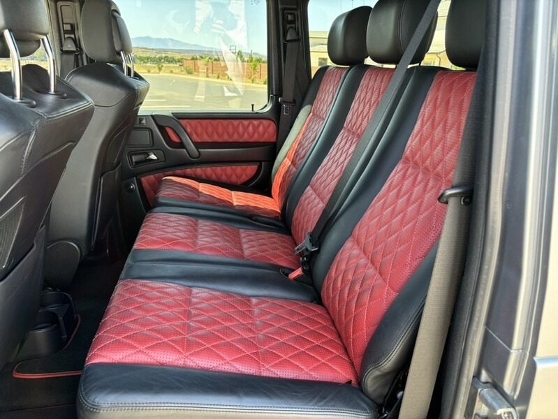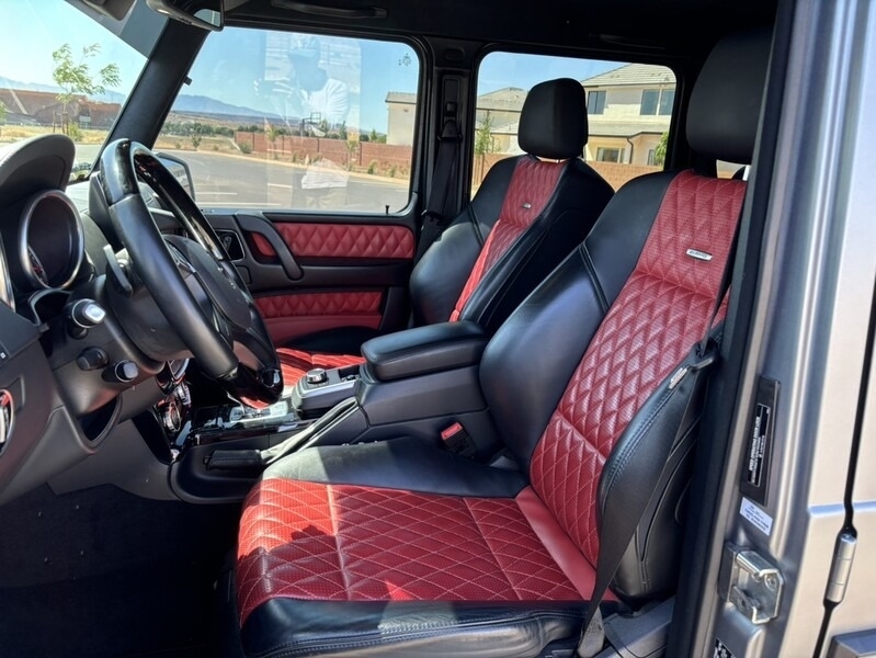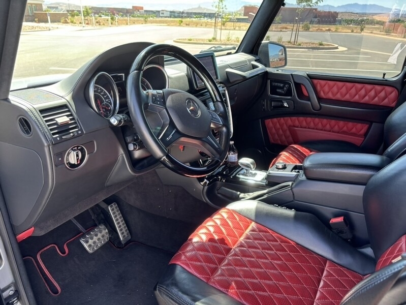 This 2016 Mercedes-Benz G-Class AMG G63 is powered by a 5.5L V8 32V engine, paired with a 7-Speed Automatic transmission with 67,100 original miles. Proudly shown with a factory matte grey exterior and red and black interior.