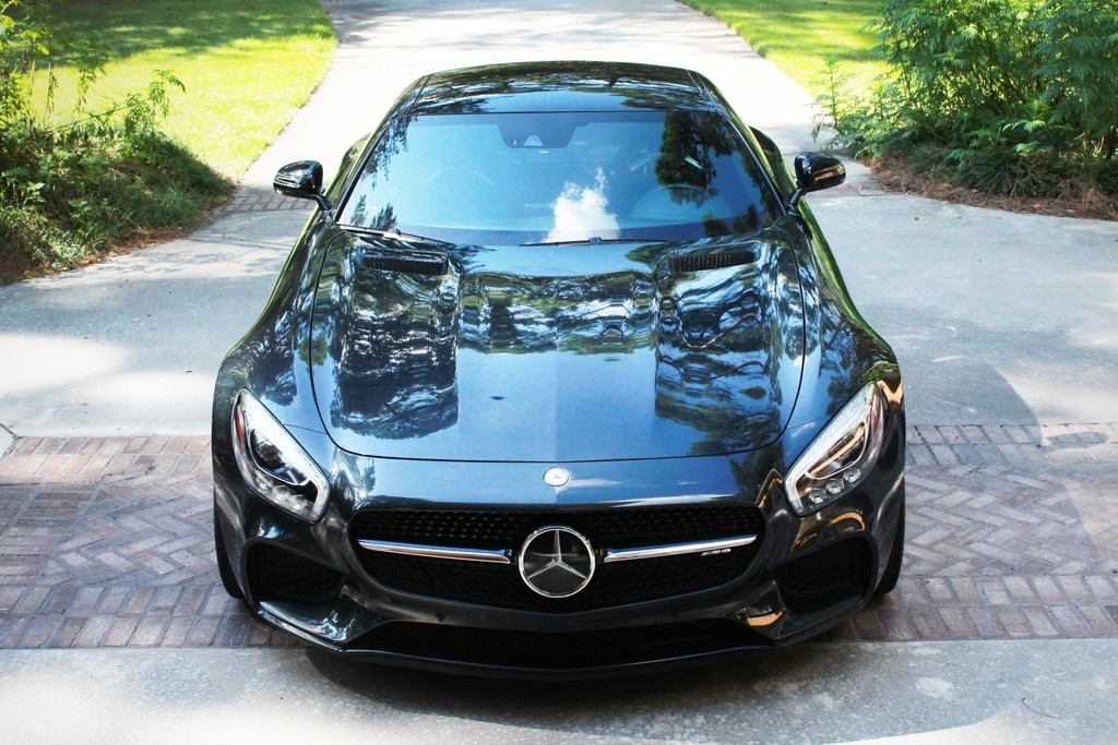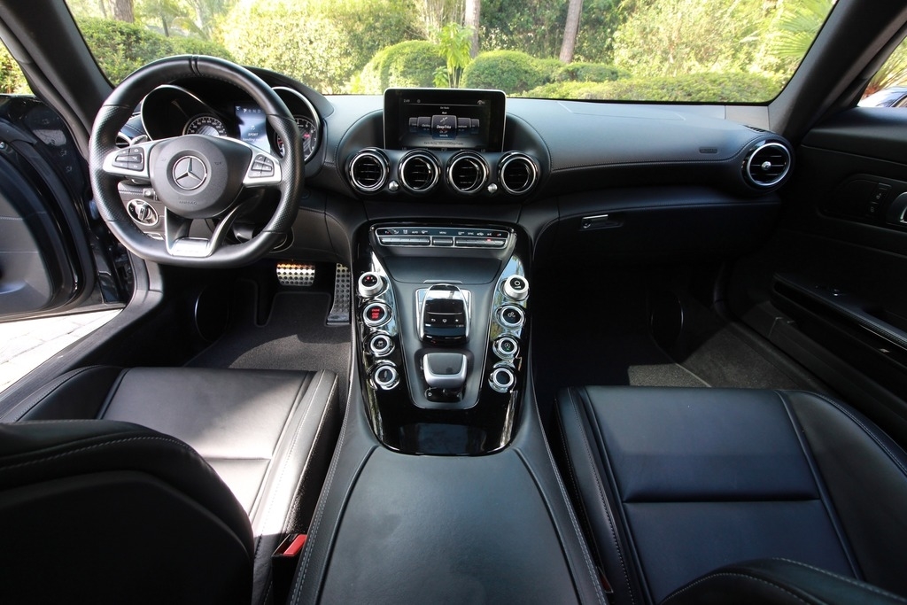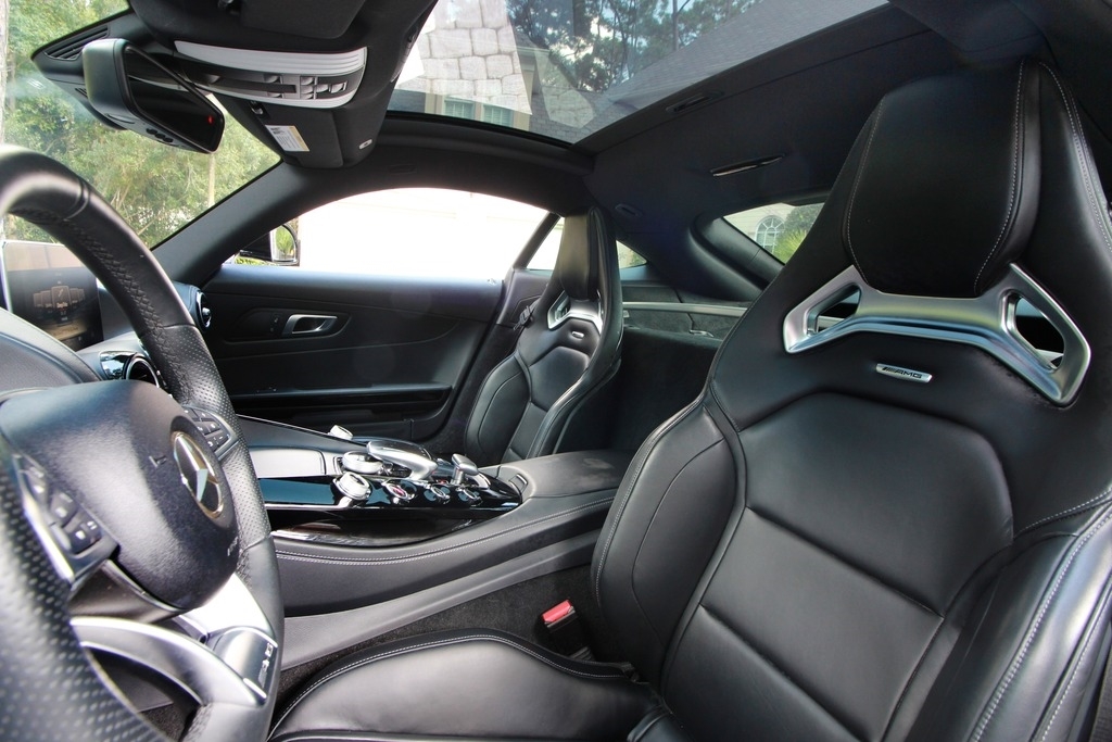 This 2017 Mercedes-Benz AMG GT is shown in a Black exterior with Black interior. It is powered by a 4L V8 gas engine paired with an automatic transmission. This is a non-smoking vehicle that has had no pets inside and has always been garage kept.