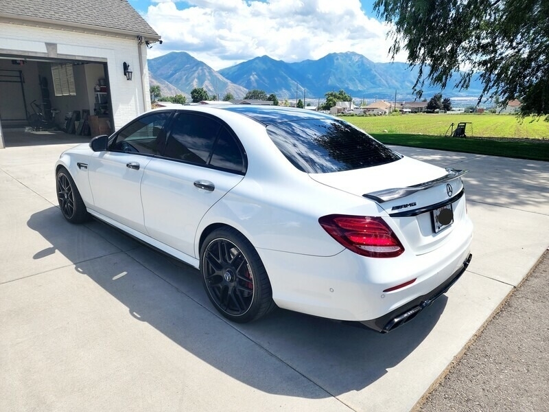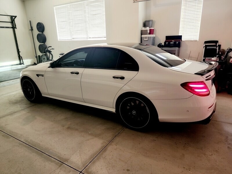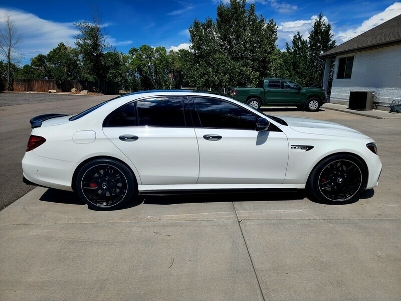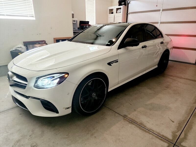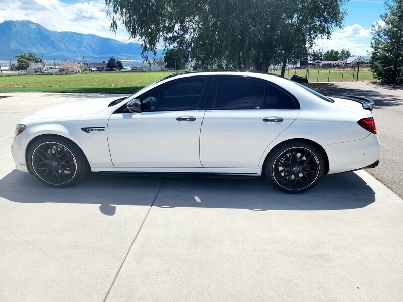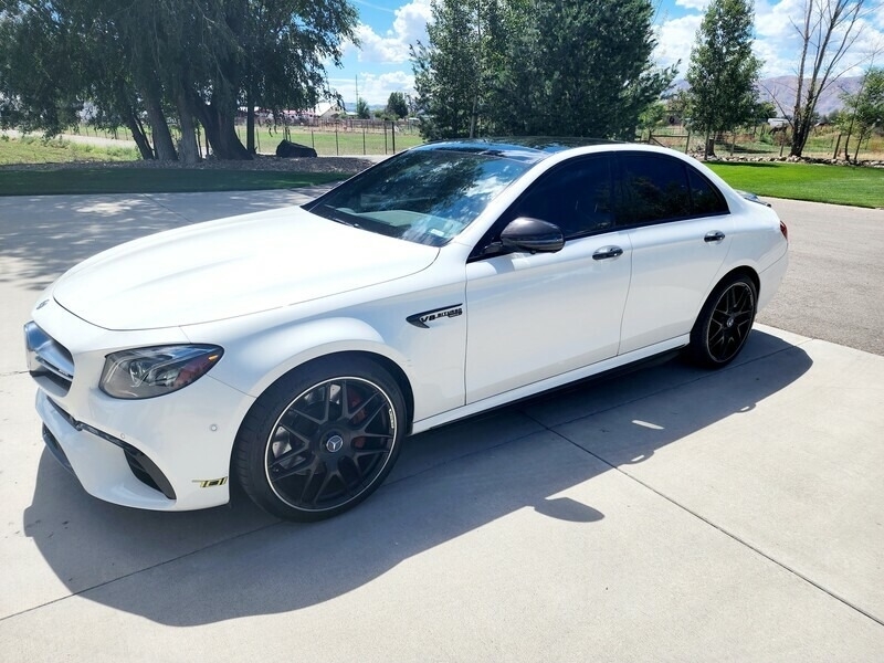 This 2018 Mercedes-Benz E-Class AMG® E 63 S Sedan is powered by a 603 HP 4L V8 gasoline engine paired with a 9-speed automatic transmission. This Mercedes-Benz is shown in Polar White with a black leather interior. This car is fun to drive! All service is up to date with no issues.