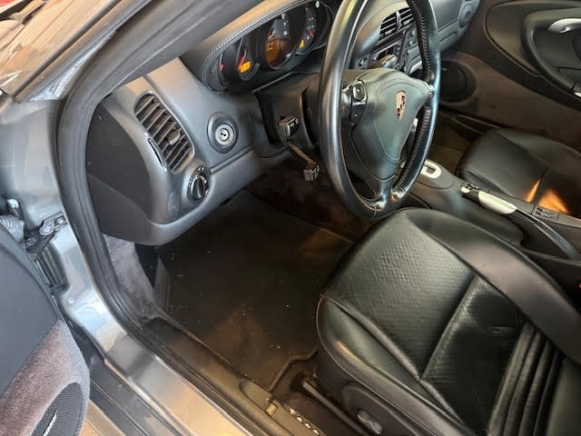 This Porsche is powered by a 3.6L flat 6 engine paired with a Tiptronic 6-speed automatic transmission. It has 33,500 miles and is shown with a Seal Grey Metallic exterior and a black leather interior. This vehicle has been well-maintained.