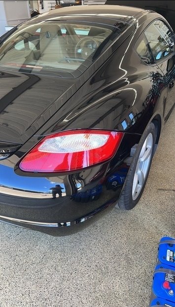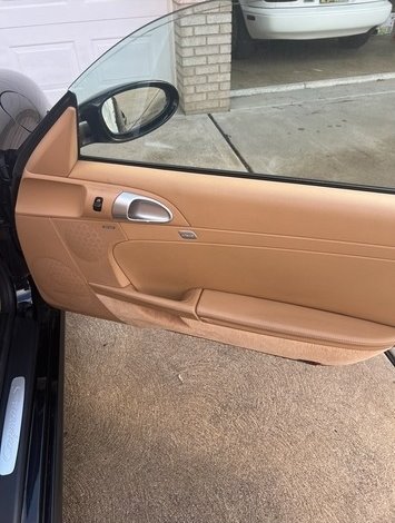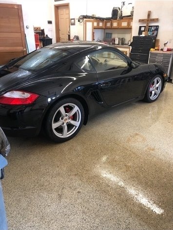 This Porsche Cayman is powered by a 3.4L H6 engine paired with a manual transmission. It has 41,375 miles and is shown with a black exterior and a beige leather interior. This vehicle has been non-smoking, garage-kept, and well-maintained.
