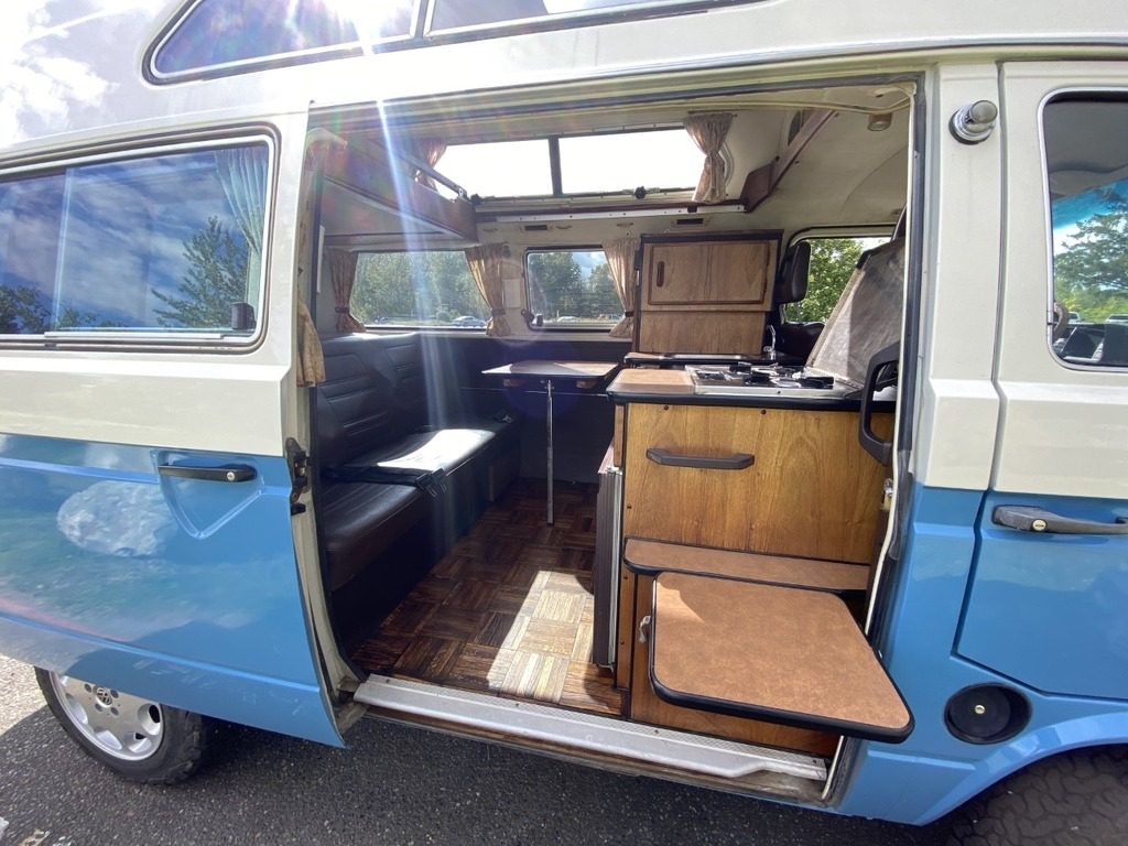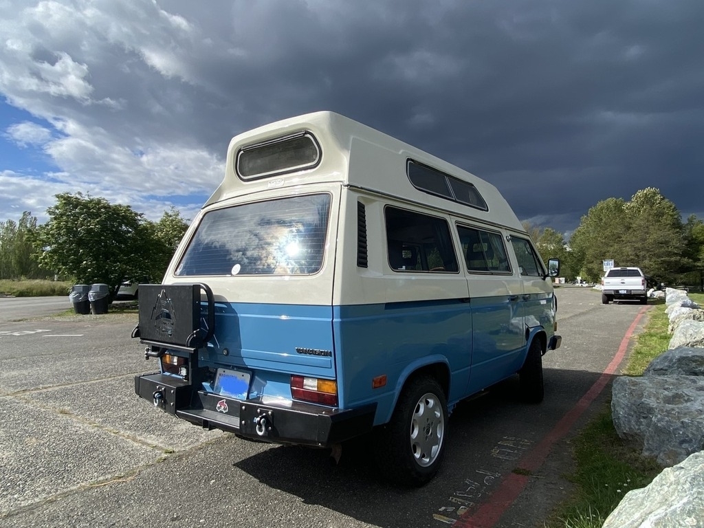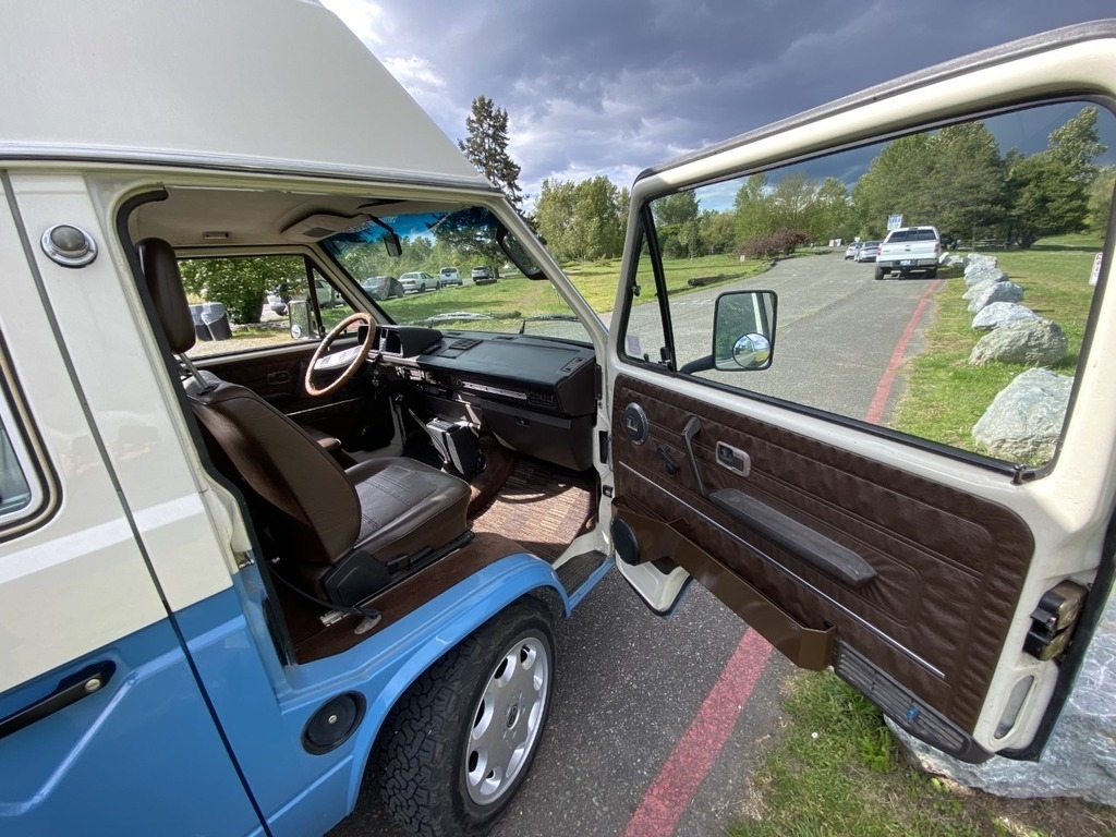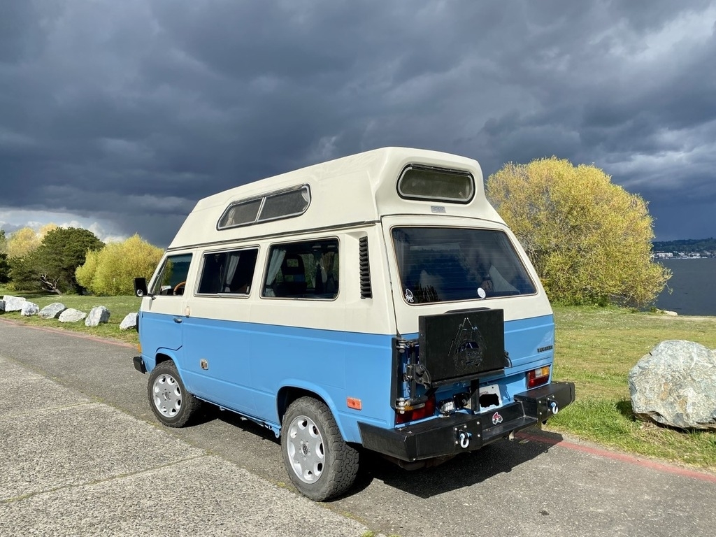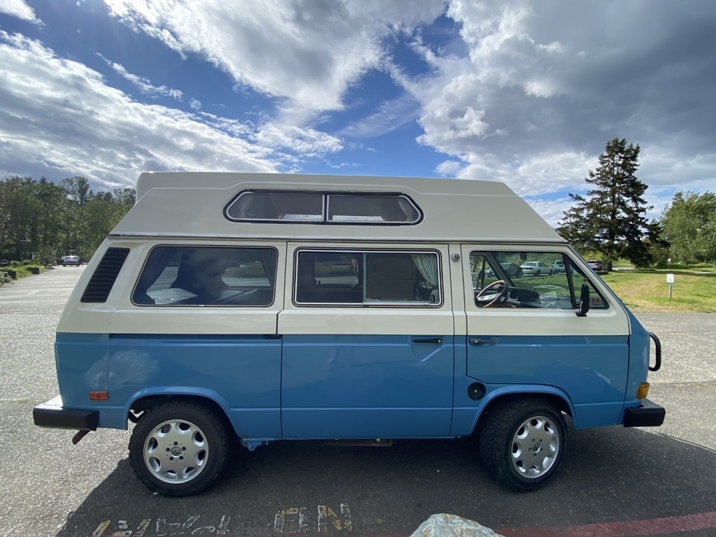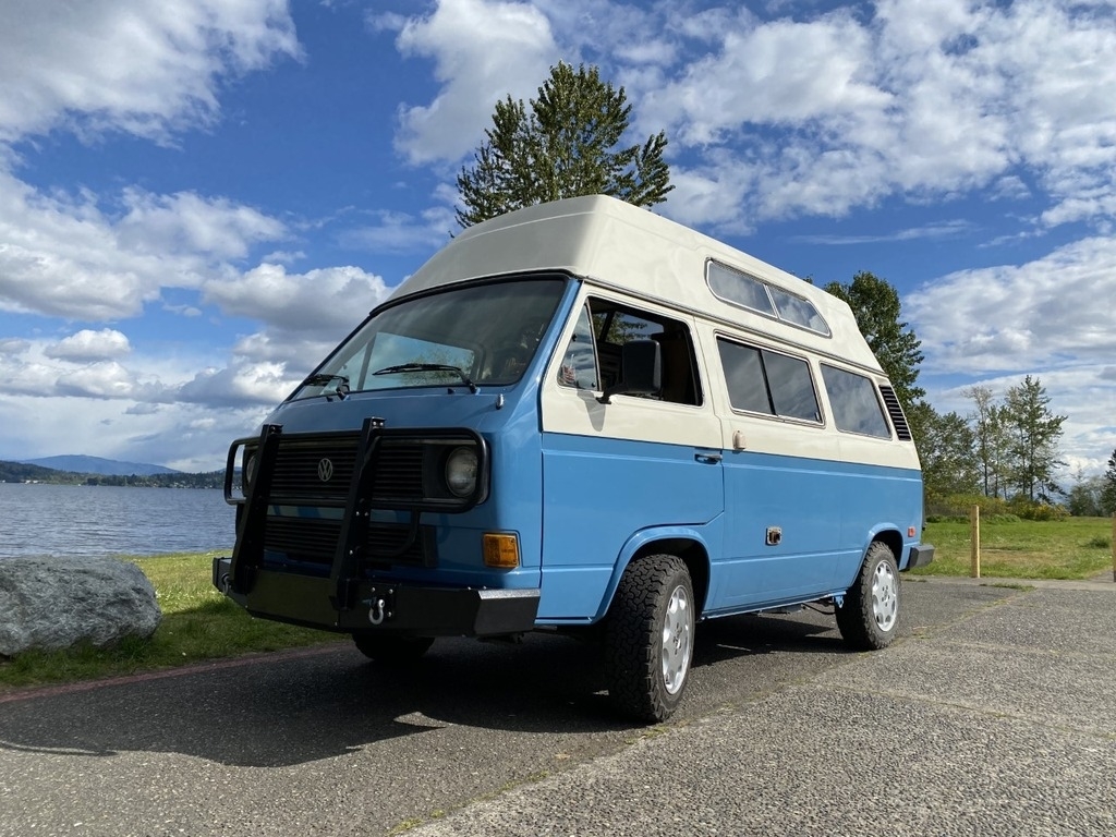 This 1984 Volkswagen Hightop Vanagon Hightop Camper made by Adventurewagen is powered by a 2.3L Gowesty motor paired with a 5-speed manual transmission. It's an amazing vehicle and is a head turner but after 13 years of adventure we have to part ways as I am building out another van and can't keep them both. This is a great camper van!