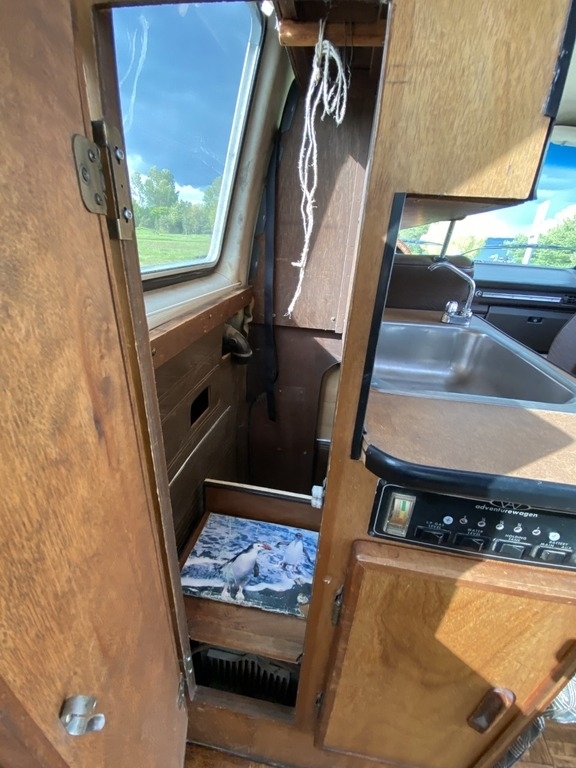 • I made modifications to some of the inefficiencies of the Adventurewagen interior--made more room for the bed, removed old scary aluminum water tank in favor of storage. Area can be reconfigured as desired or go back to original.