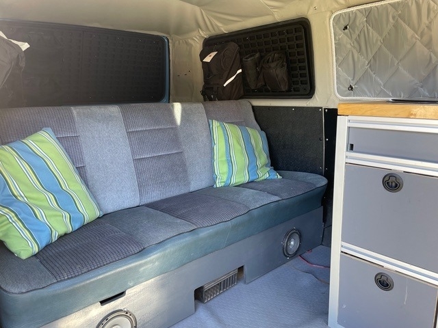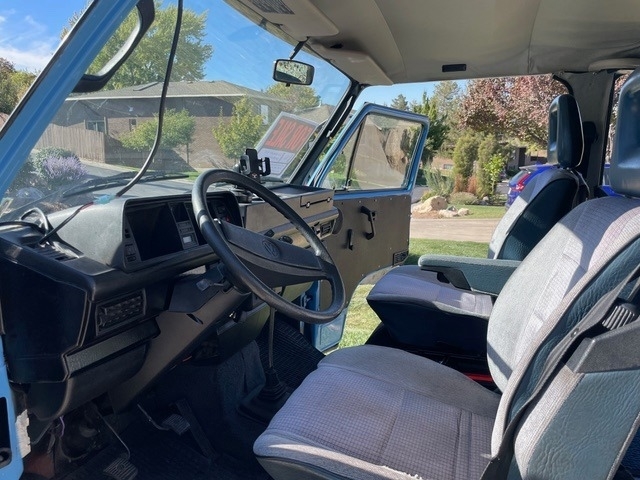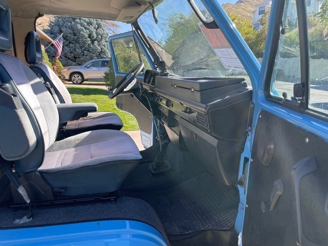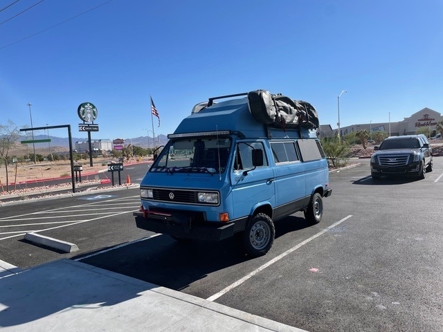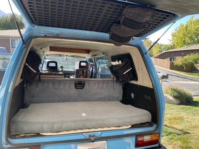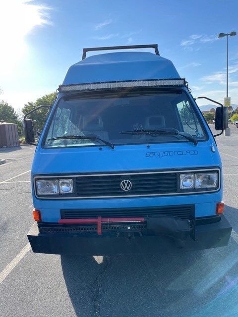 “This 1986 VW Vanagon Synchro is a unique and well-loved conversion, originally a grey tin-top passenger van, which has been transformed into a high-top Weekender camper with a height of over 9ft. It features a Subaru EJ25 motor, which was converted prior to my ownership, along with a new wiring harness and ECU. The odometer reads 119,187 miles and is believed to be the original odometer. The van is equipped with a 4WD manual transmission, a single locking differential, and a decoupler, all of which are activated via an interior vacuum switch, ensuring excellent off-road capabilities. Inside, the van features a NAHT high-top conversion installed by VW Upfitters, complete with side windows, a bed platform, and headliner, providing a spacious and functional camper setup. The van also boasts many upgrades, including GoWesty plate steel front and rear bumpers, new paint and bodywork, a new catalytic converter that passes emissions in Utah, GoWesty springs for improved suspension, and an LED headlight and taillight upgrade. The Vanagonlife overland bay windows on both the driver and passenger sides, along with a Vanagonlife rear hatch window with a tire mount, add both style and functionality. A 50” straight light bar with Vanagonlife bar brackets, an ARB awning, and a HI-Lift jack with bumper mount complete the overland-ready setup. Inside, there is a handmade two-drawer kitchen cabinet with a Dometic sink and stove combo, perfect for cooking meals on the go. Heavy-duty truck mirrors, both left and right, provide enhanced visibility. There are a few things that need attention, including rear brake shoes that need replacing, axle flange seals that need attention, and a few small electrical issues like rear license plate bulbs and a dash bulb that need replacing. The radio, light bar, and roof vent wiring need to be reconnected to the main fuse box, as they were previously wired to an auxiliary battery, which has since been removed due to constant issues. This Vanagon Synchro is a reliable, well-built camper with plenty of potential for adventure, ideal for someone who appreciates vintage VW vans with the added benefit of modern upgrades and off-road capabilities.”