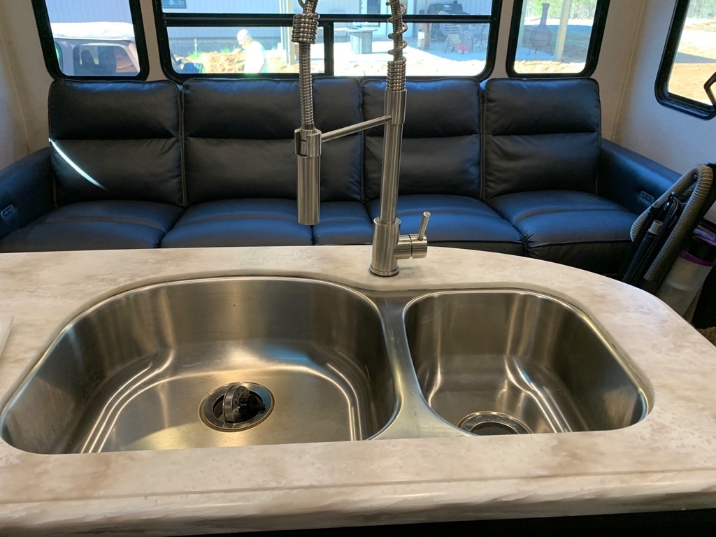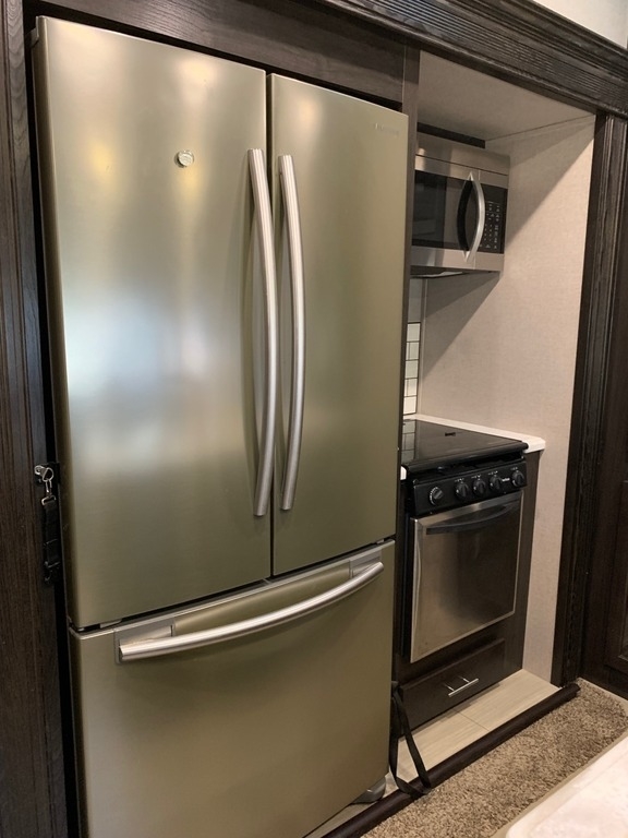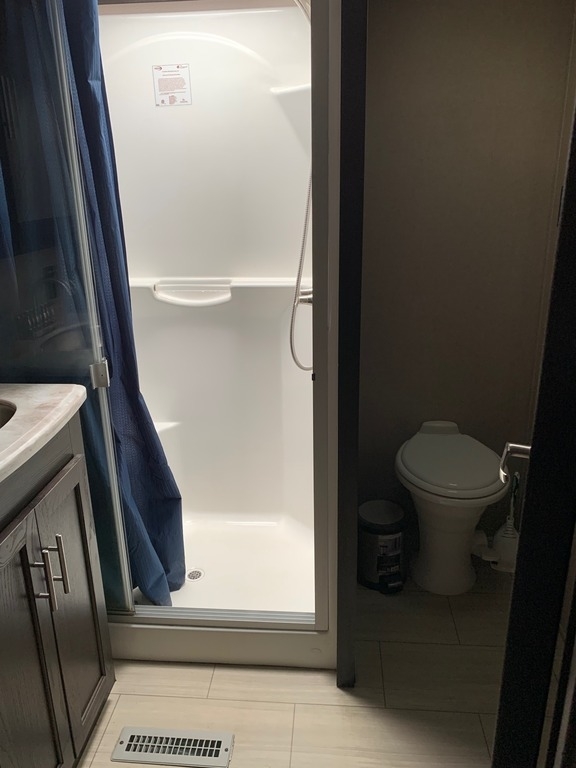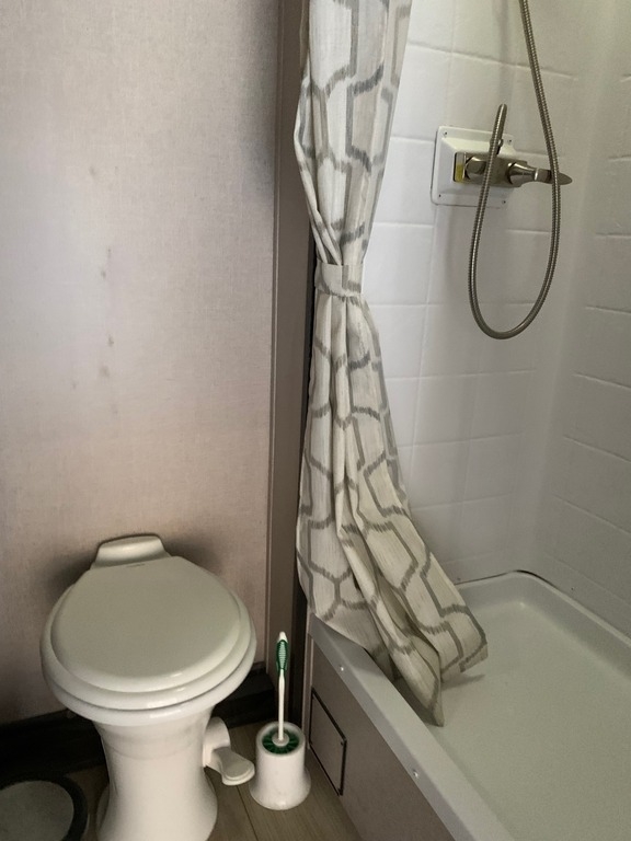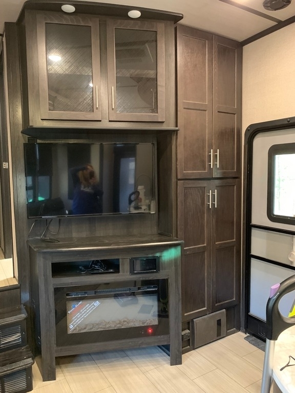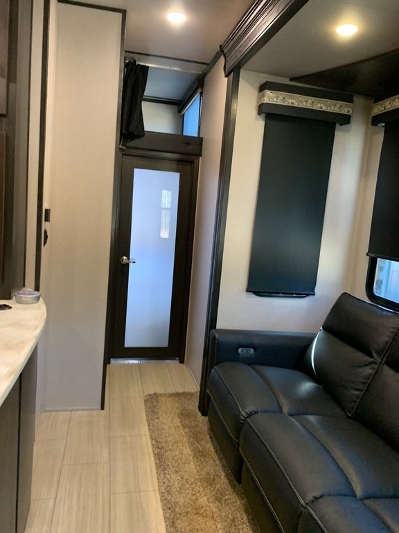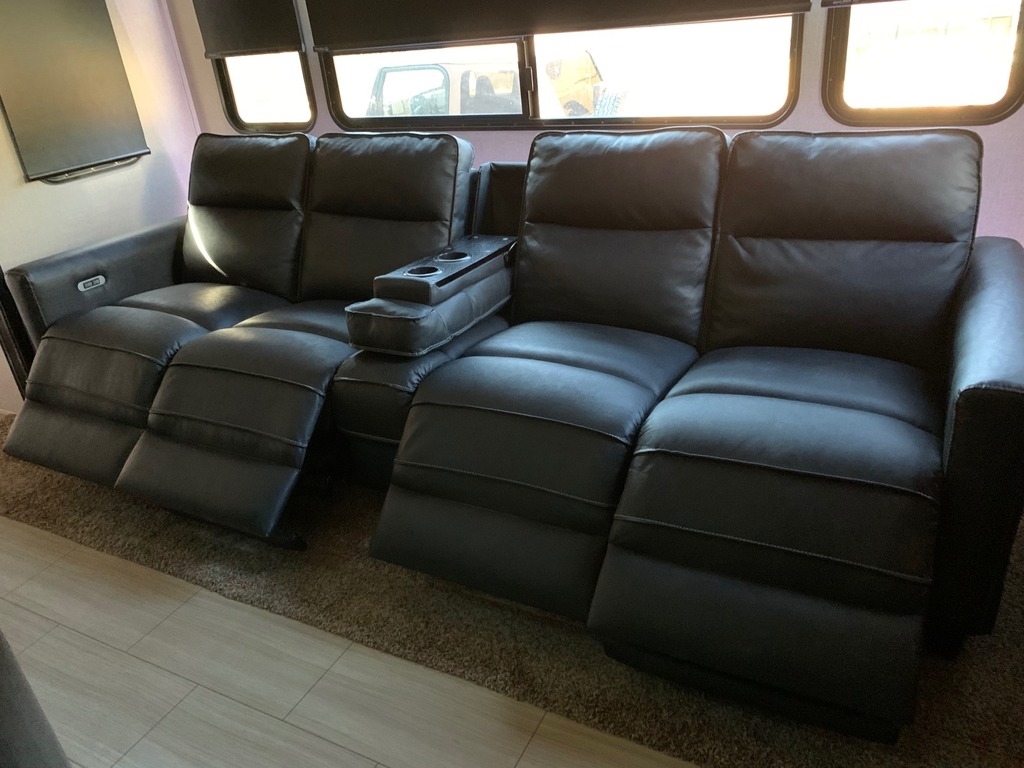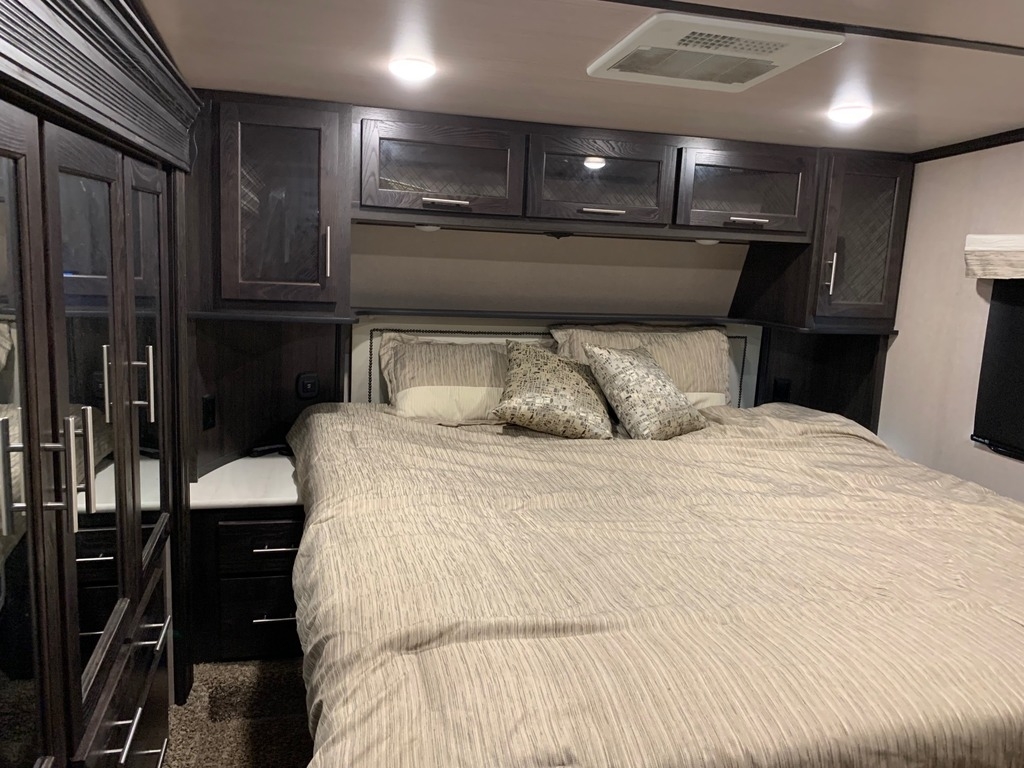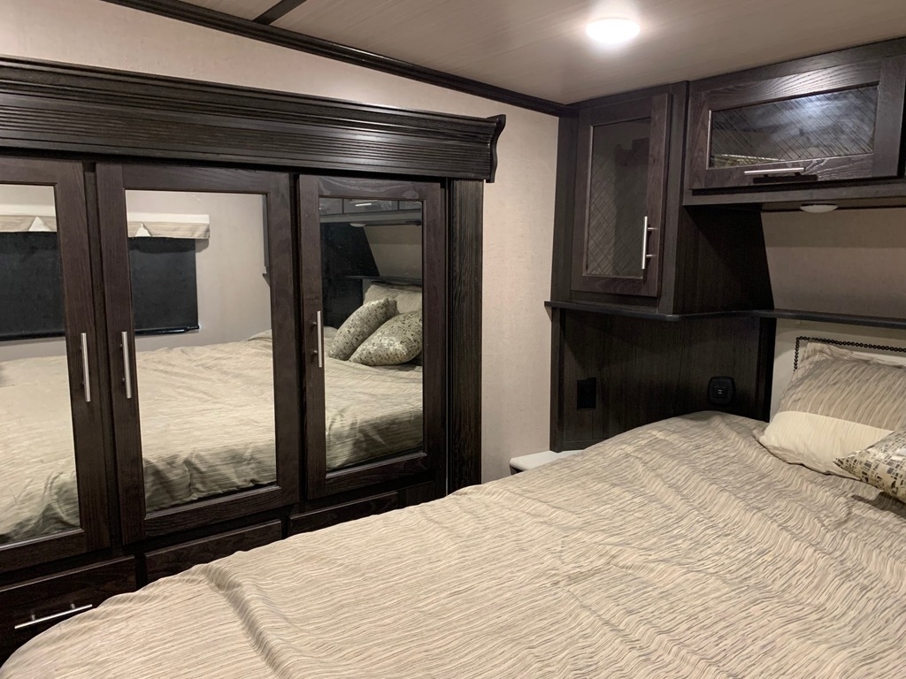 This Thunderbolt has an overall length of 44.5ft and comes equipped with an Onan 5500 Onboard Generator, 13ft Garage with Fueling Station, 3 Slide Outs, 3 Awnings, 3 AC Units, 2 Bathrooms and Room to Sleep 8.