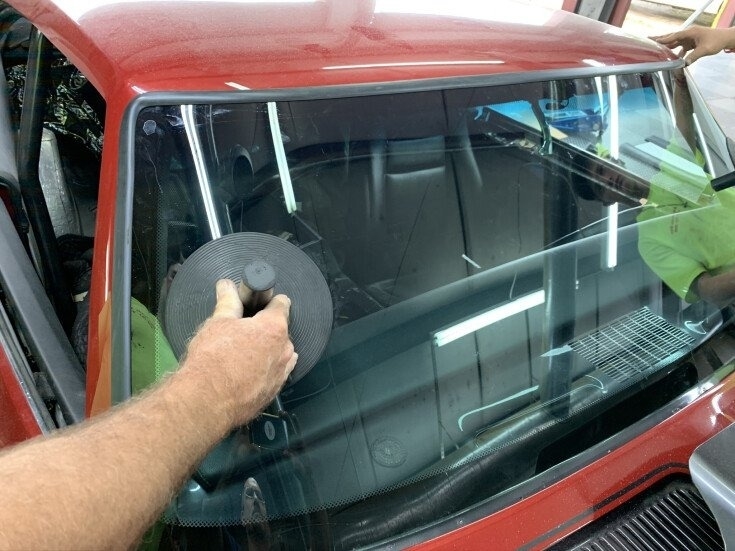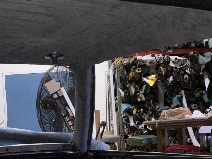 Marquez Design One-Piece Fiberglass Headliner And Pilars Covered In Dark Graphite Suede