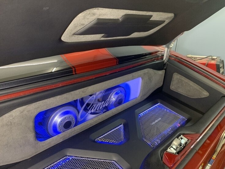 Custom Rear Window Speaker Tray With Chevy Emblem And Led Lights