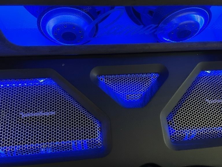 Dash Mounted Tweeters. 2x 12" Hertz HX300 Subs, In Glass Enclosed 4th Order Box With Leds.