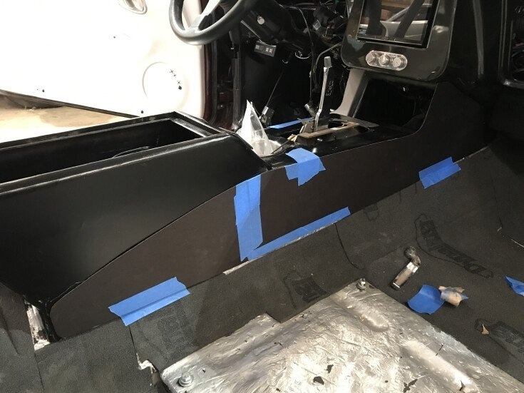 Hand-Made Center Console And Center-Dash Console: Painted Gray/Covered With Vinyl/Leather/Suede To Match Doors