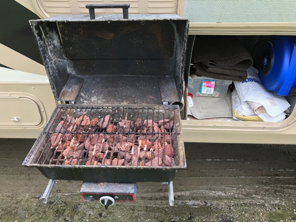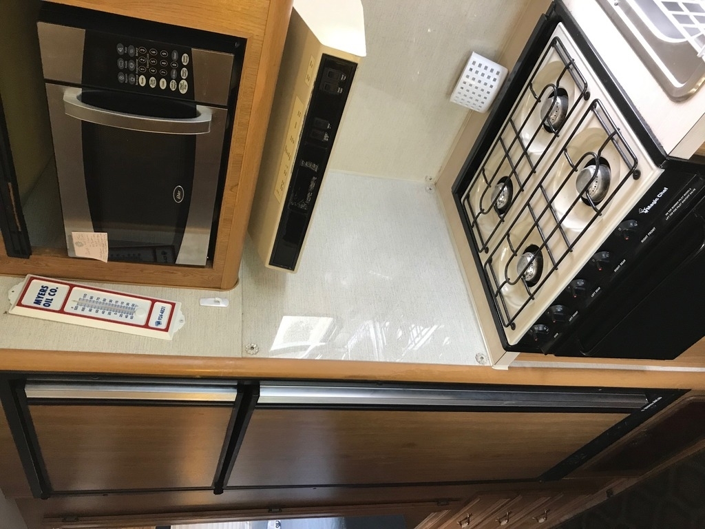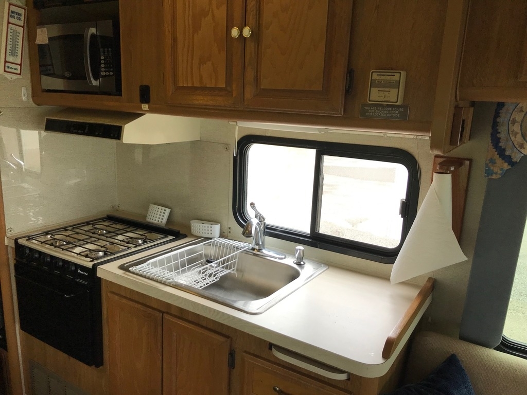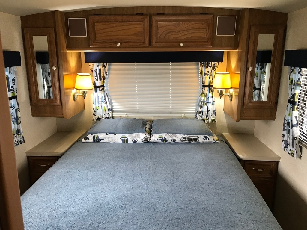 Allegro is 32’ in length and has NO Slide Outs, An Awning, AC Unit and