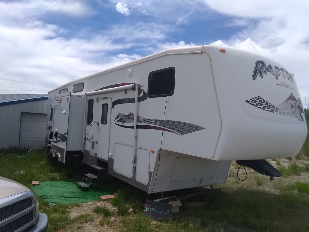 This 2007 Keystone Raptor 3712TS Toy Hauler has overall length of 44 feet, has 3 Slide Outs, an Awning, 1 AC Unit and Sleeps 10. This is a non-pet/non-smoking RV and there has not been any accidents or water damage.
