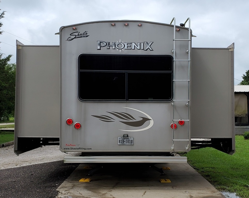 This 2016 Shasta Phoenix 35 BH Fifth Wheel has an overall length of 39.10 and comes equipped with 4 Slide Outs, 1 Awning, 2 AC units and has 1.5 bathrooms and plenty of room to sleep 8. This unit has no history of any accidents or water damage.