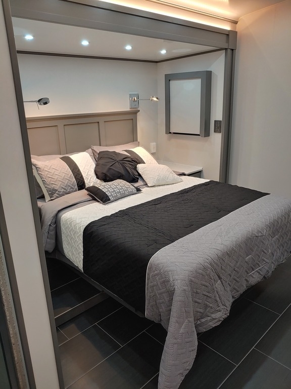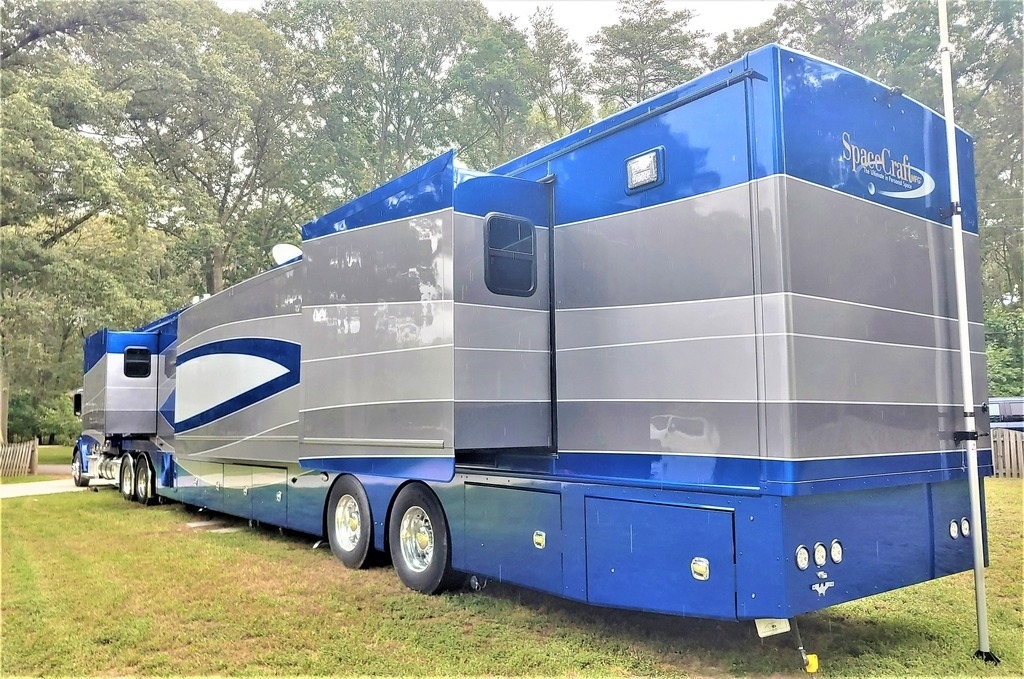 This SpaceCraft Semi Trailer Comes Equipped with A Detroit DD 16 Diesel Engine. The Rig Has 3,651 Miles. This Spacecraft Features 6 Slide Outs, 2 Queen Bedrooms. This Unit Features A Mini Split Residential Heating & Cooling, a 12 kW Diesel Onan Generator, Heated Tile Floors, &Full Residential Kitchen.