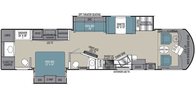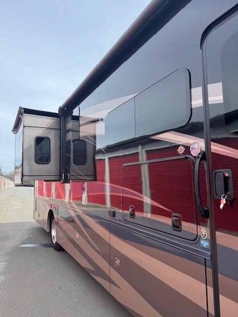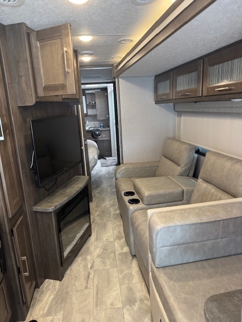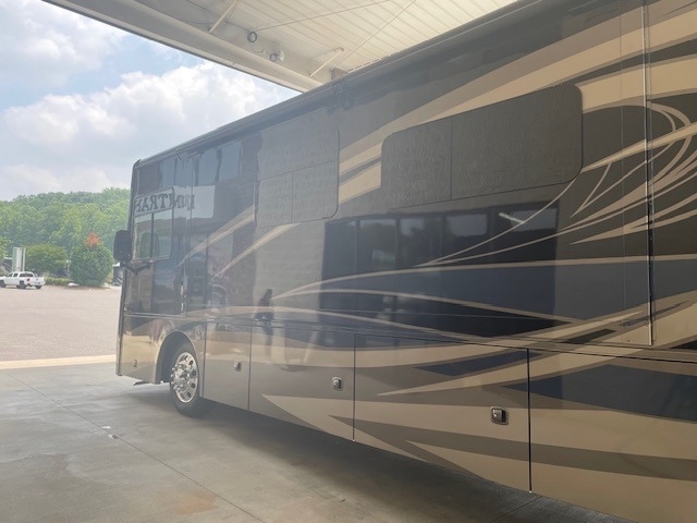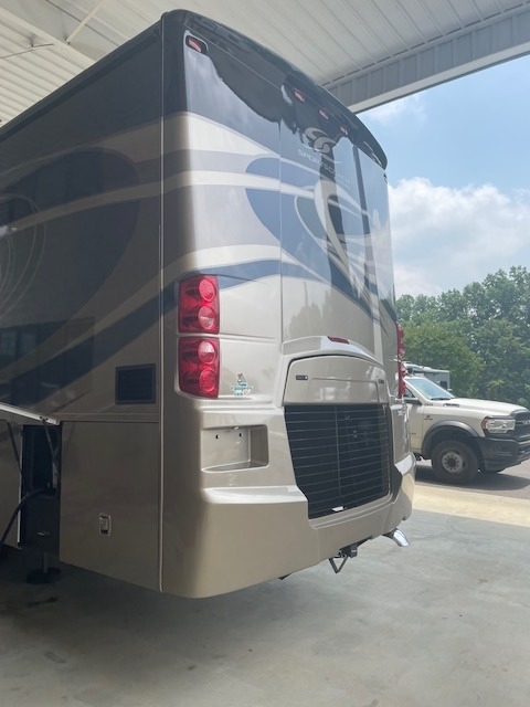 This Coachmen is powered by a 6.7L I6 diesel engine and a 6-speed automatic transmission with 11,000 miles. The overall length is 40 feet and it comes equipped with 2 power retractable slide-outs, 1 power retractable awning, 2 A/C units, 1½ baths, a fireplace, a generator, outdoor entertainment, and plenty of room to sleep 8. This unit has been well-maintained, and has a 5 year warranty
