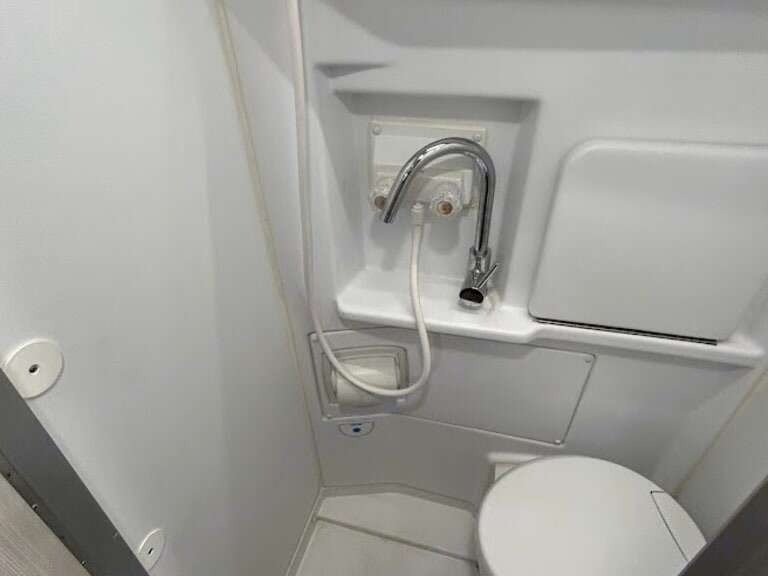 for two, a full kitchen, a bathroom with a cassette toilet, an on-demand hot