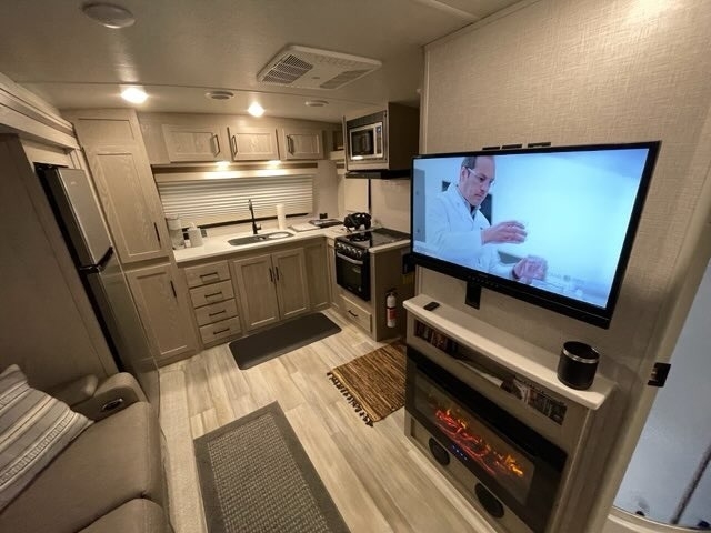 This Rockwood has an overall length of 25.92 feet and comes equipped with 2 power retractable slide-outs, 1 power retractable awning, a fireplace, and plenty of room to sleep 4. This unit has been well-maintained.
