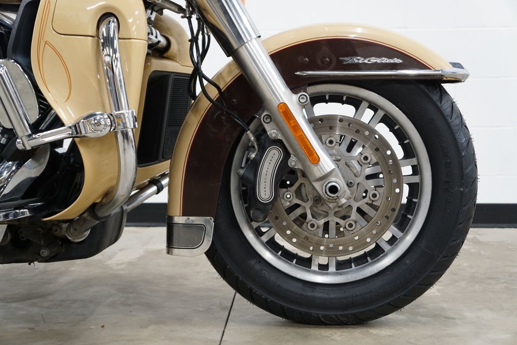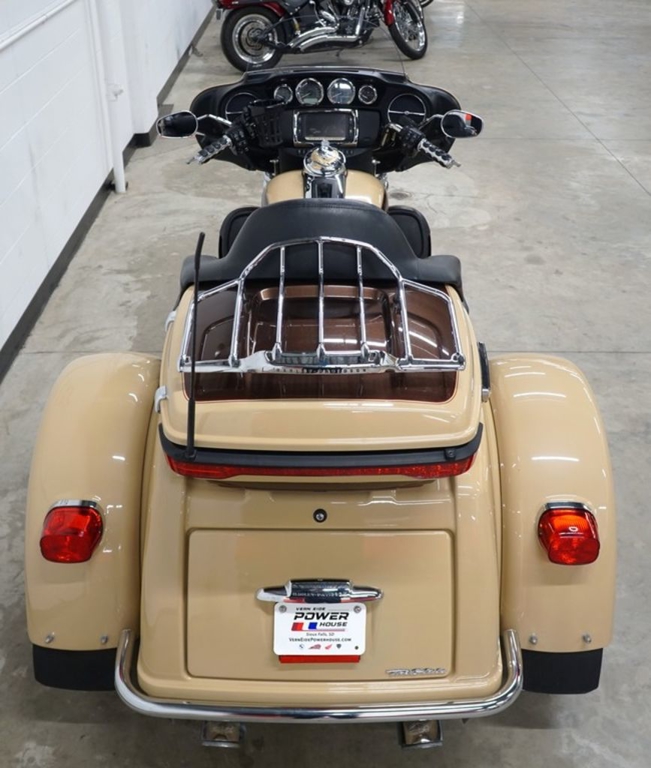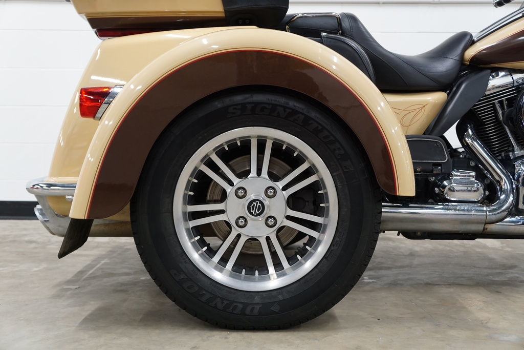 The 2014 Harley-Davidson® Trike motorcycles provide you long-haul comfort and confidence. As part of Project RushMore, for 2014 the Harley® Tri Glide® Ultra has been totally redesigned. The new twin-cooled high output Twin Cam 103™ engine is built to deliver more power for passing, climbing hills and carrying a passenger and luggage. There are new rear-to-front linked brakes for maximum stopping power. And the new Daymaker LED headlamp and LED fog lamps let you see farther than ever before. The new Boom Box 6.5 infotainment system features a 6.5 in full-color touch screen and the loudest, clearest speakers ever in a Harley-Davidson® motorcycle. The luggage spaces have been redesigned with more space inside, a sleek new look outside and new latches that can be operated with one hand. The iconic batwing fairing has also been changed to reduce head buffeting without losing its distinctive, authentic Harley-Davidson® style.